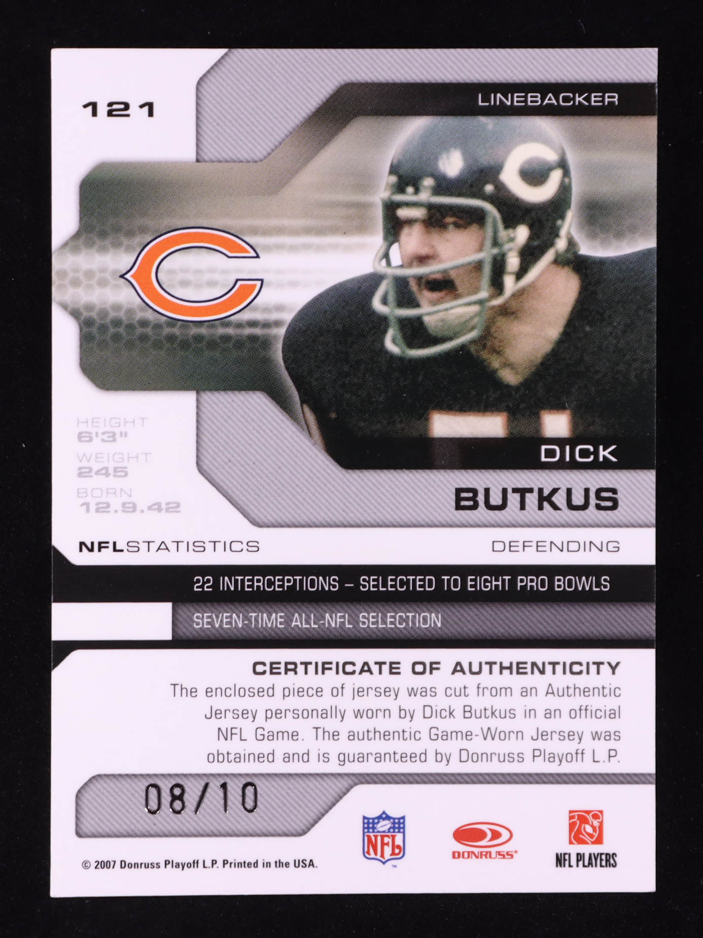 Dick Butkus 2007 Leaf Limited Threads Prime Team Logo #121 #8/10