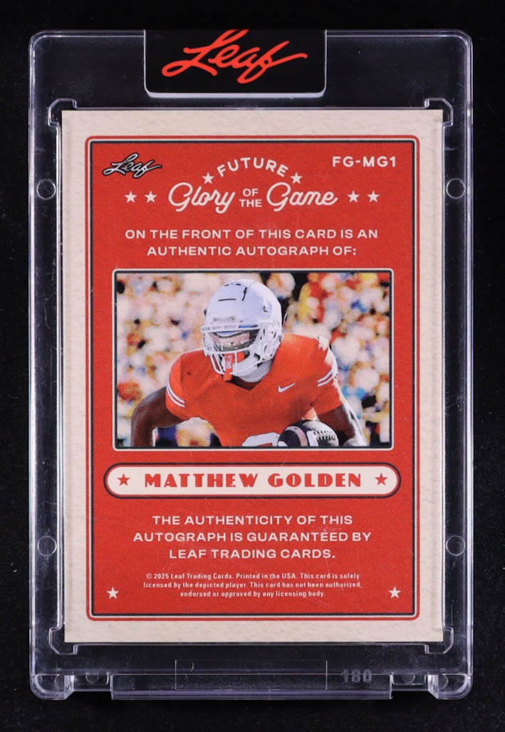Matthew Golden 2025 Leaf Glory of the Game Future Glory Autographs Silver #FGMG1 #44/99 RC