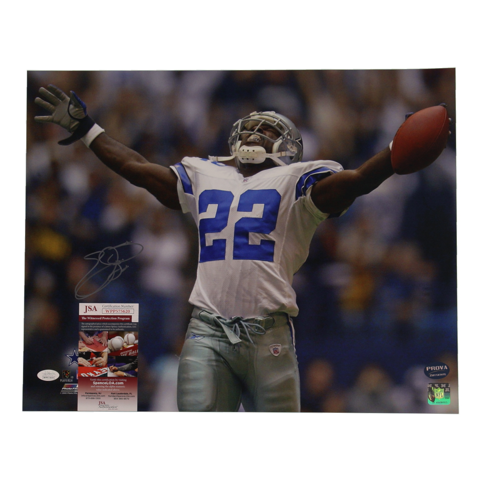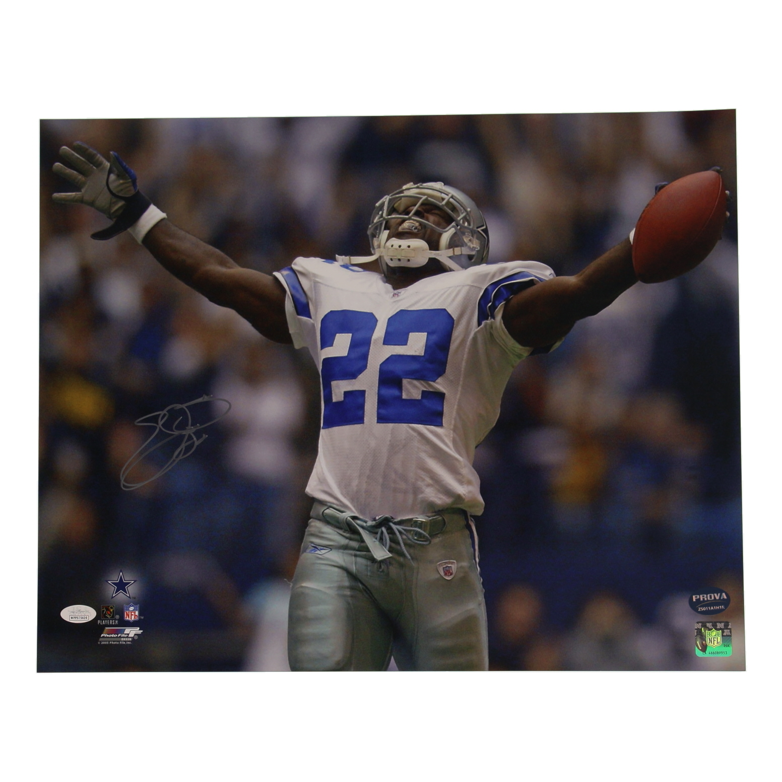 Photo measures 16" x 20" in size. Hand-signed by Emmitt Smith (Dallas Cowboys, HOF).