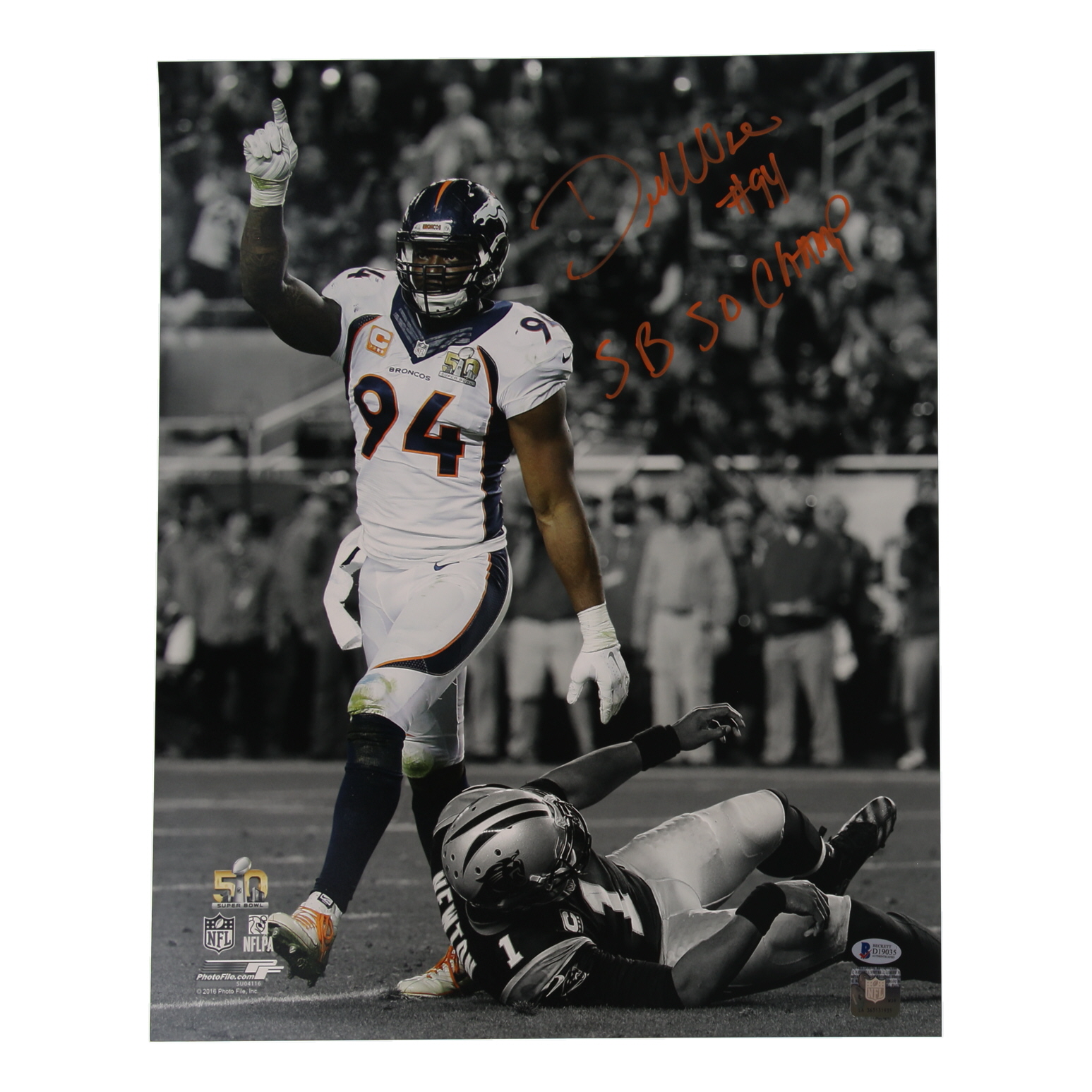 DeMarcus Ware Signed Broncos 16x20 Photo Inscribed "SB 50 Champs" (Beckett)