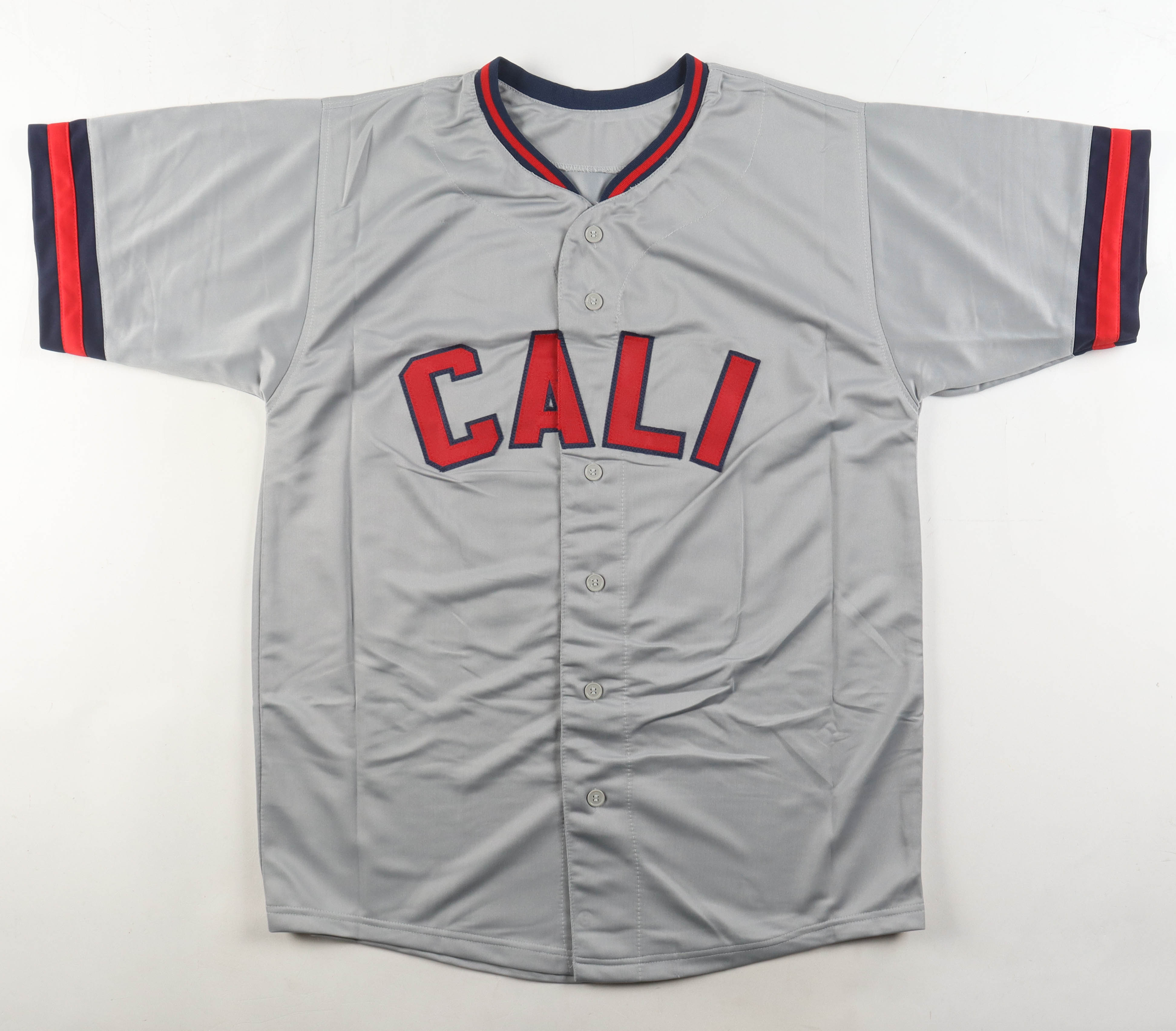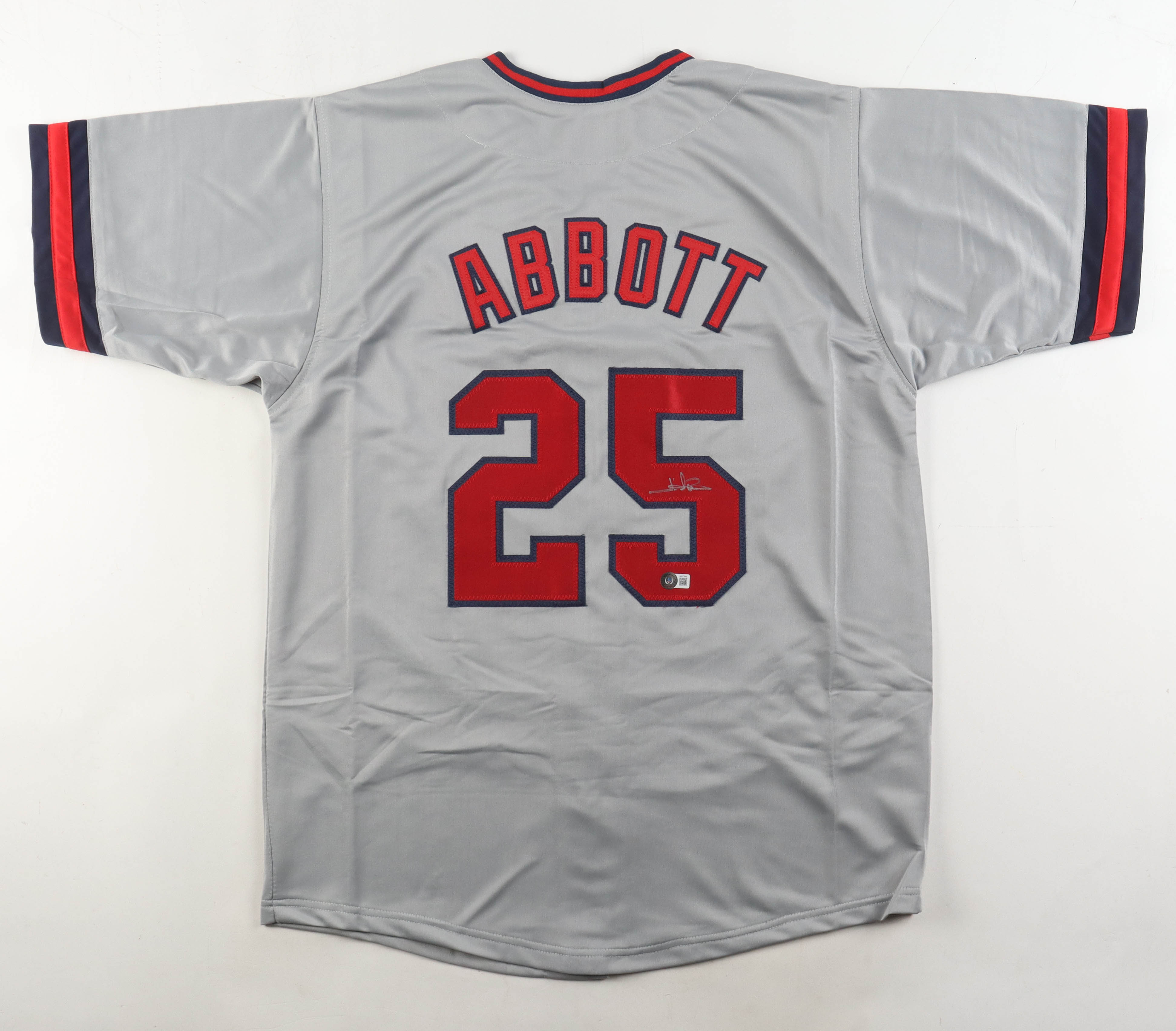 Custom jersey with everything sewn on, size XL. Hand-signed by Jim Abbot.