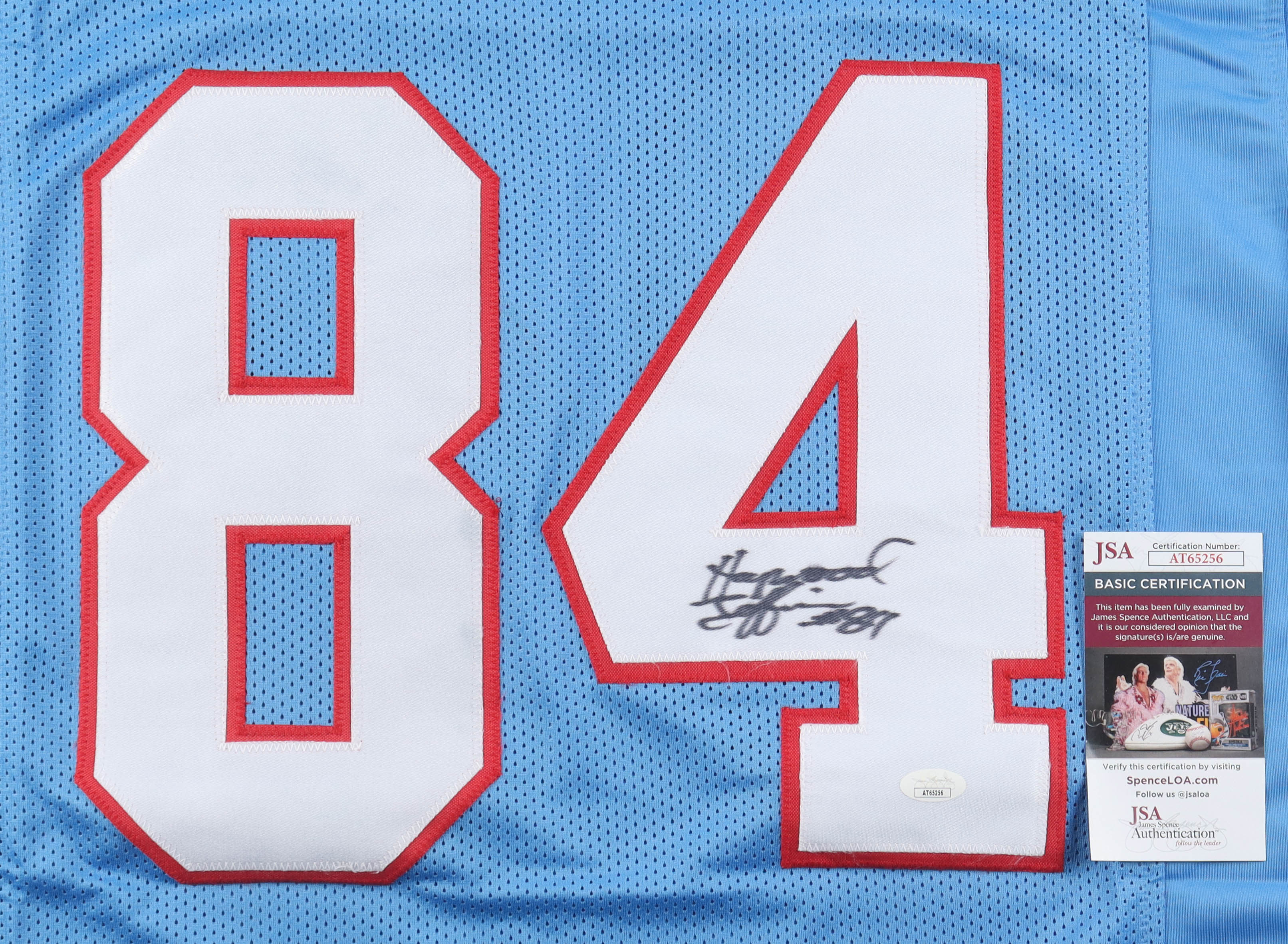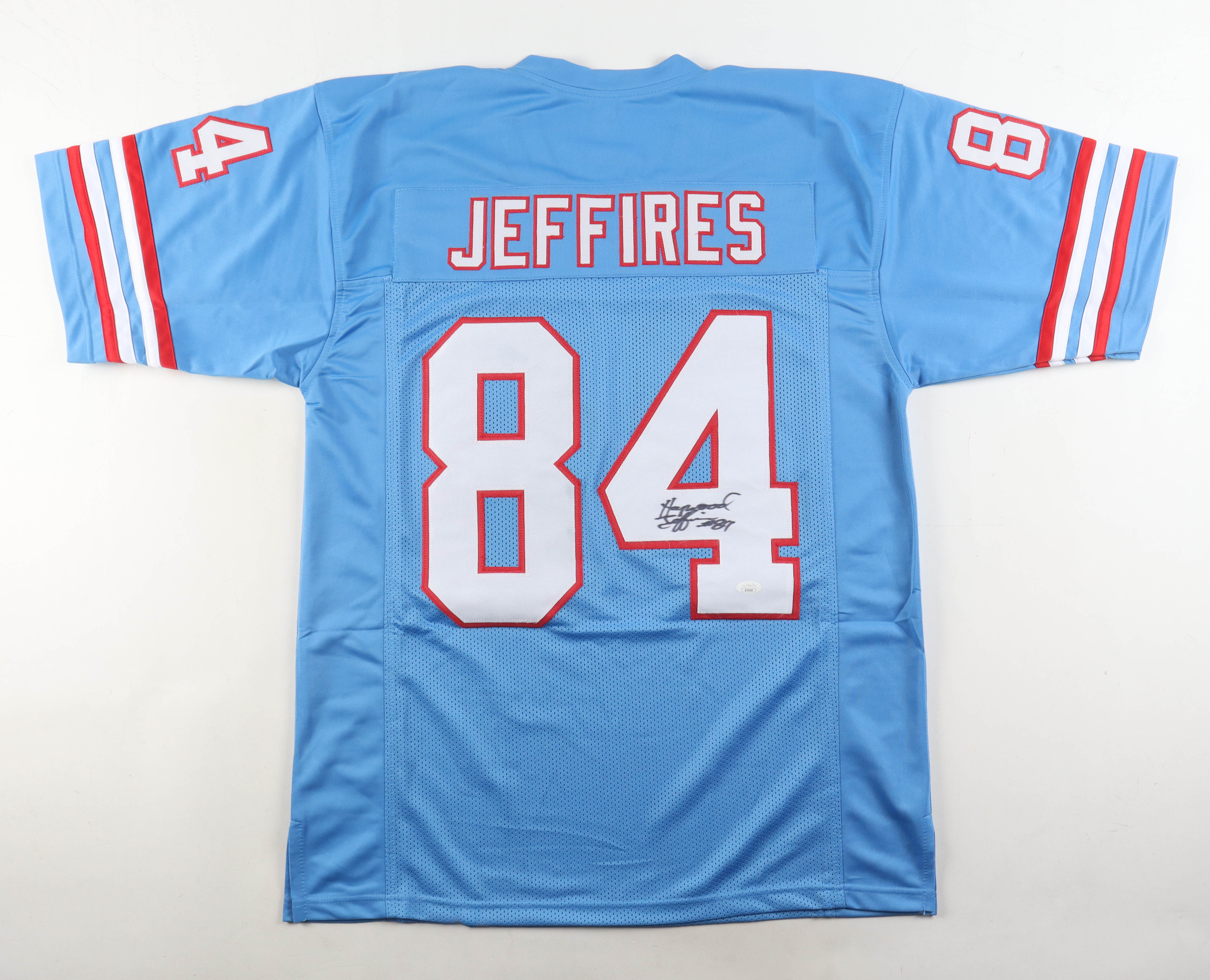 Custom jersey with everything sewn on, size XL. Hand-signed by Haywood Jeffires. Please note, the signature has bled. See photos regarding the condition of the item.