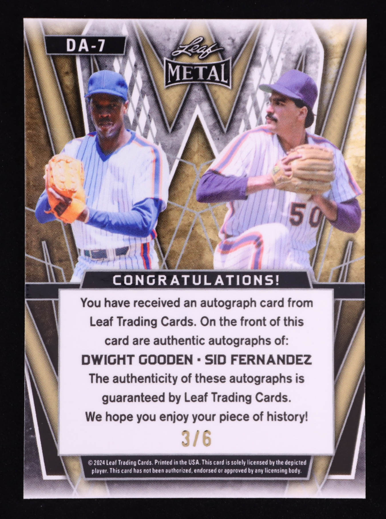 Dwight Gooden / Sid Fernandez 2024 Leaf Metal Dual Autographs Green Lava #DA7 #3/6