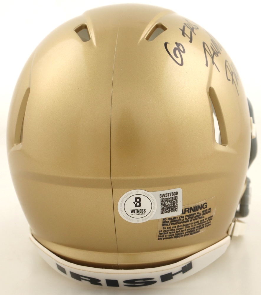 Riddell Notre Dame Fighting Irish Speed Mini Helmet. Hand-signed and inscribed by Rudy Ruettiger.