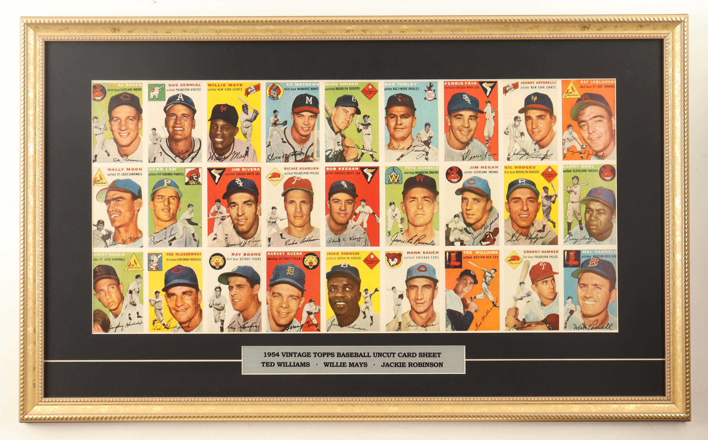 1954 Vintage Topps Baseball Uncut Sheet of (27) Trading Cards Custom Framed Display