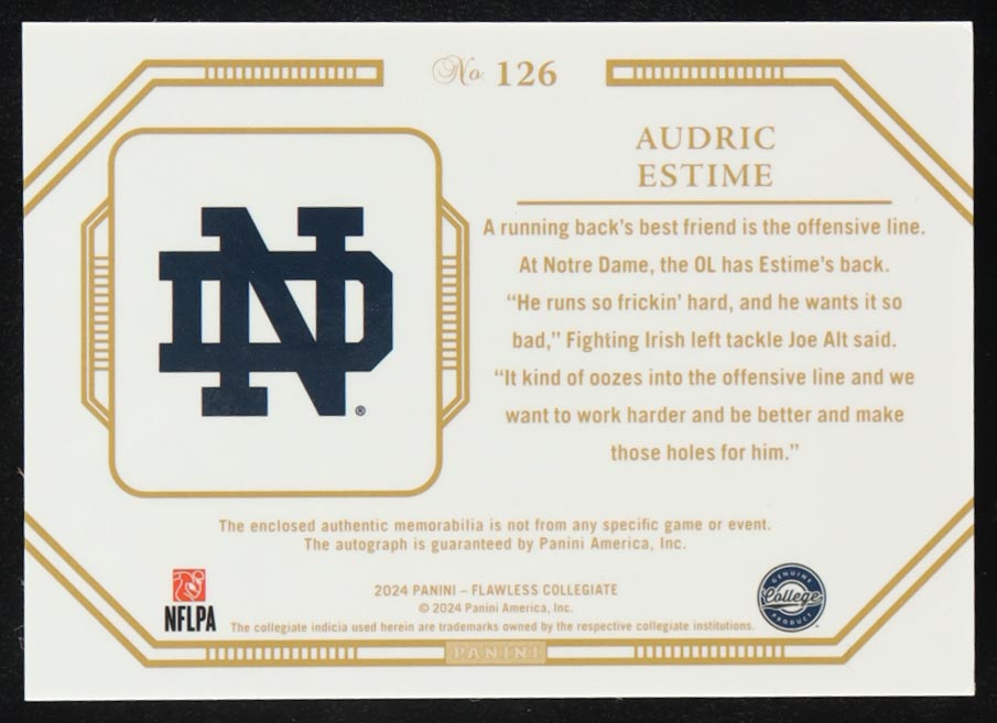 Audric Estime 2024 Panini National Treasures Collegiate Flawless Rookie Patch Autographs Horizontal #126 #02/25 RC