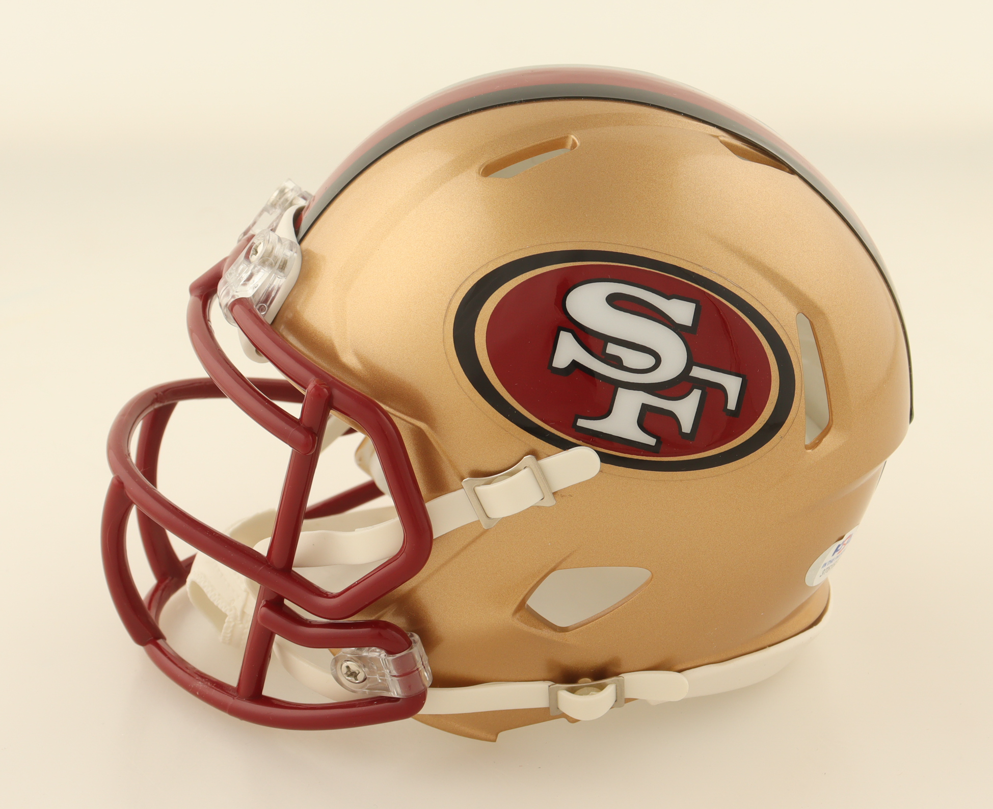 Riddell San Francisco 49ers Throwback Alternate Speed Mini Helmet. Hand-signed by Jeff Garcia.