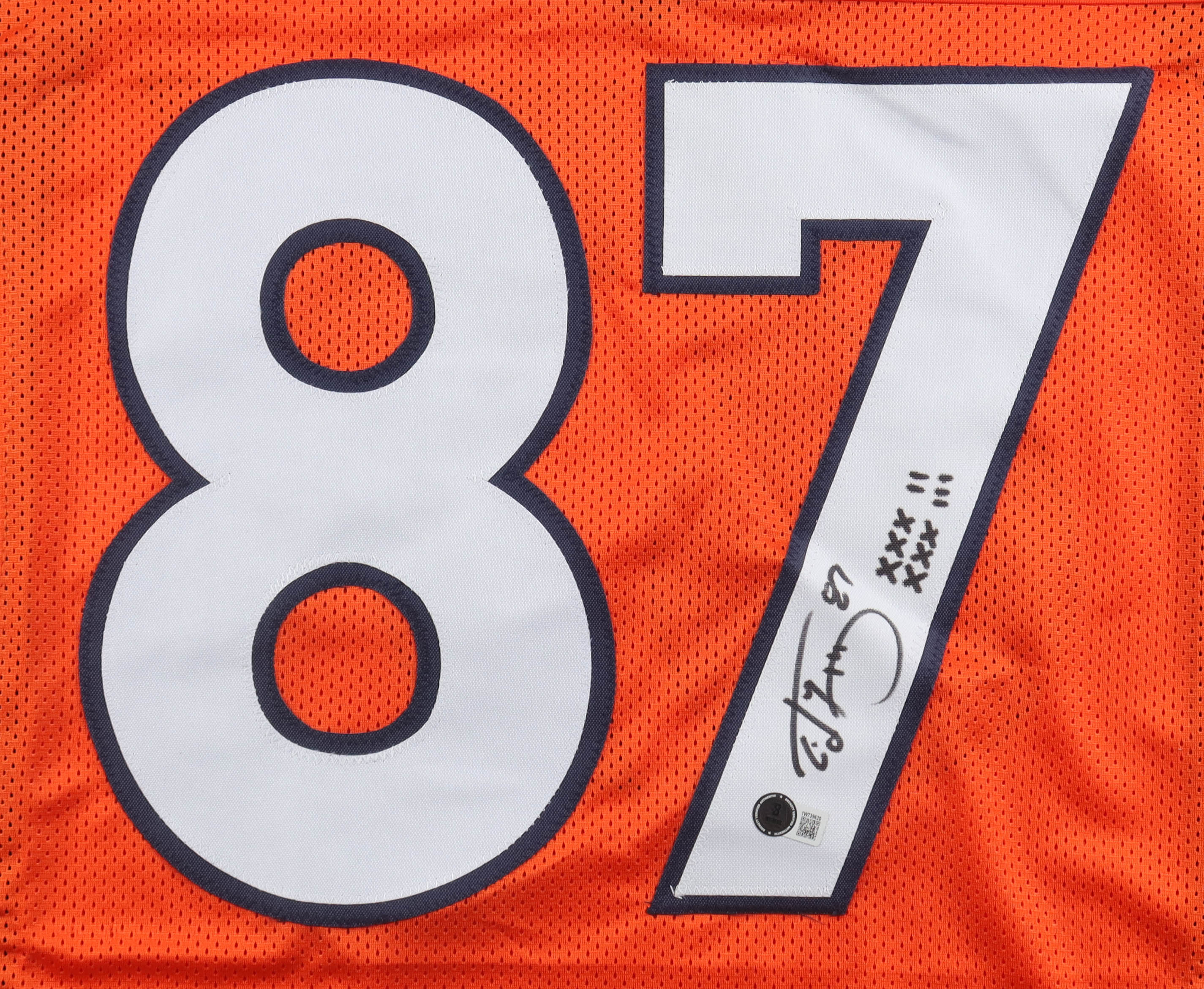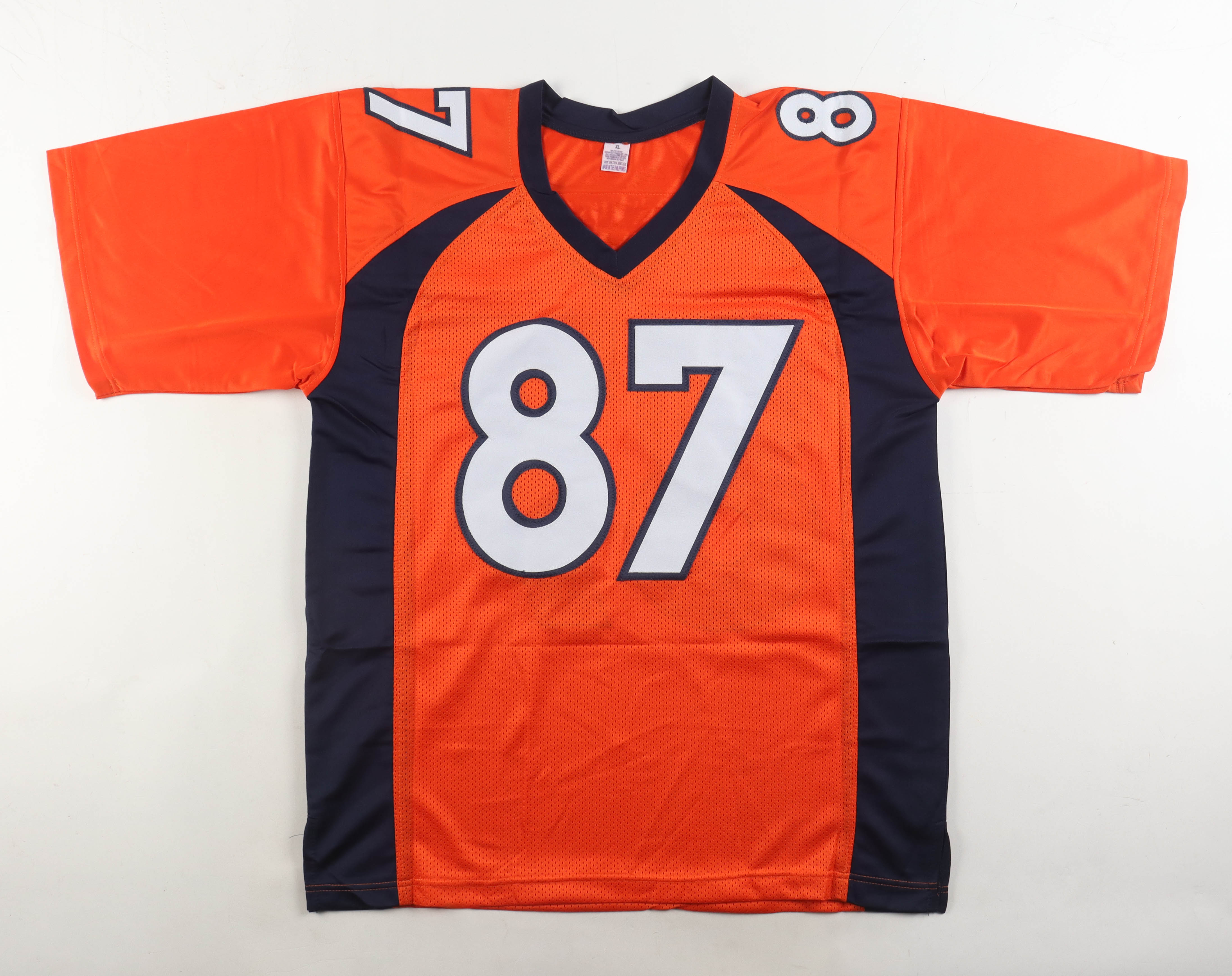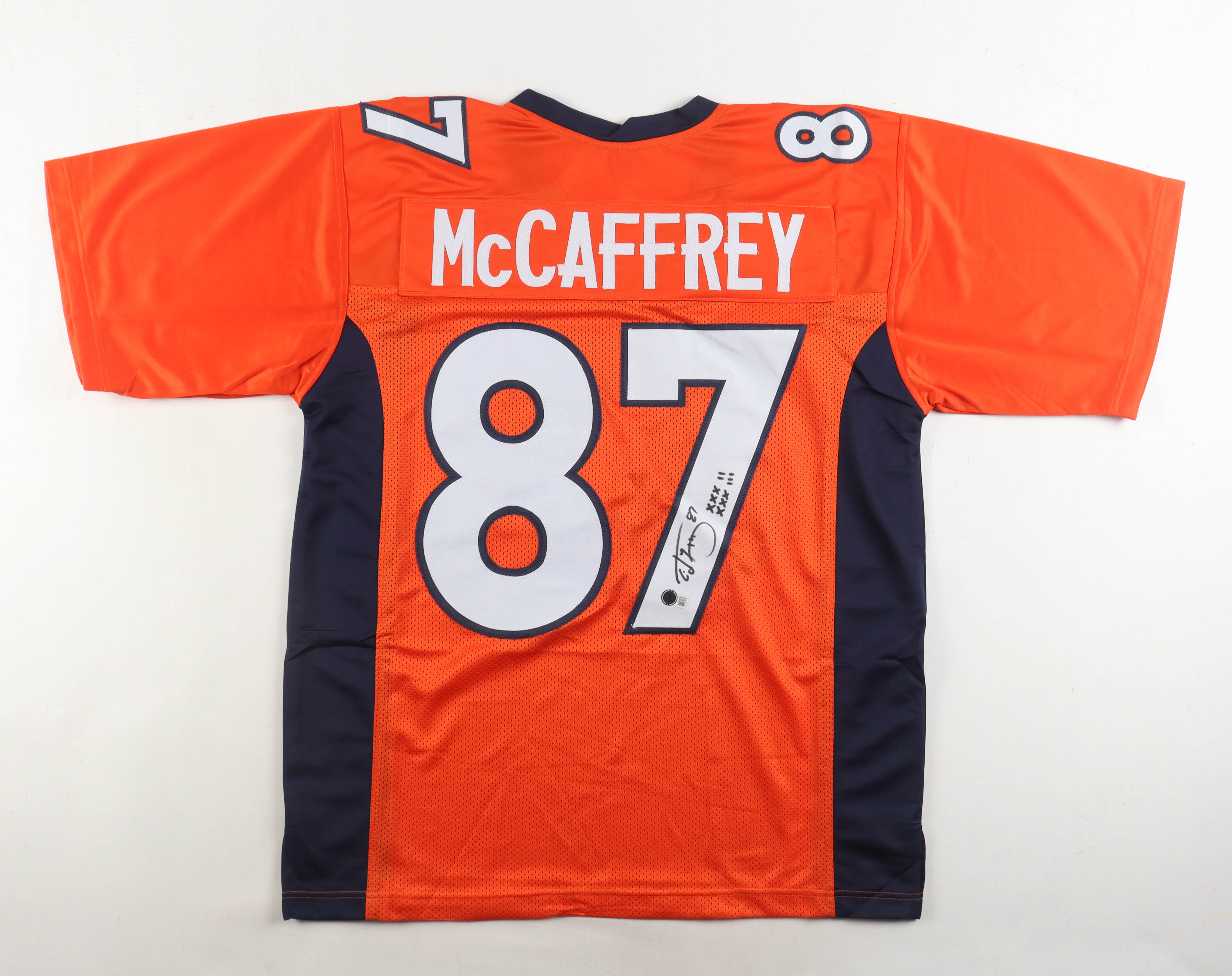 Custom jersey with everything sewn on, size XL. Hand-signed and inscribed by Ed McCaffrey (Denver Broncos).