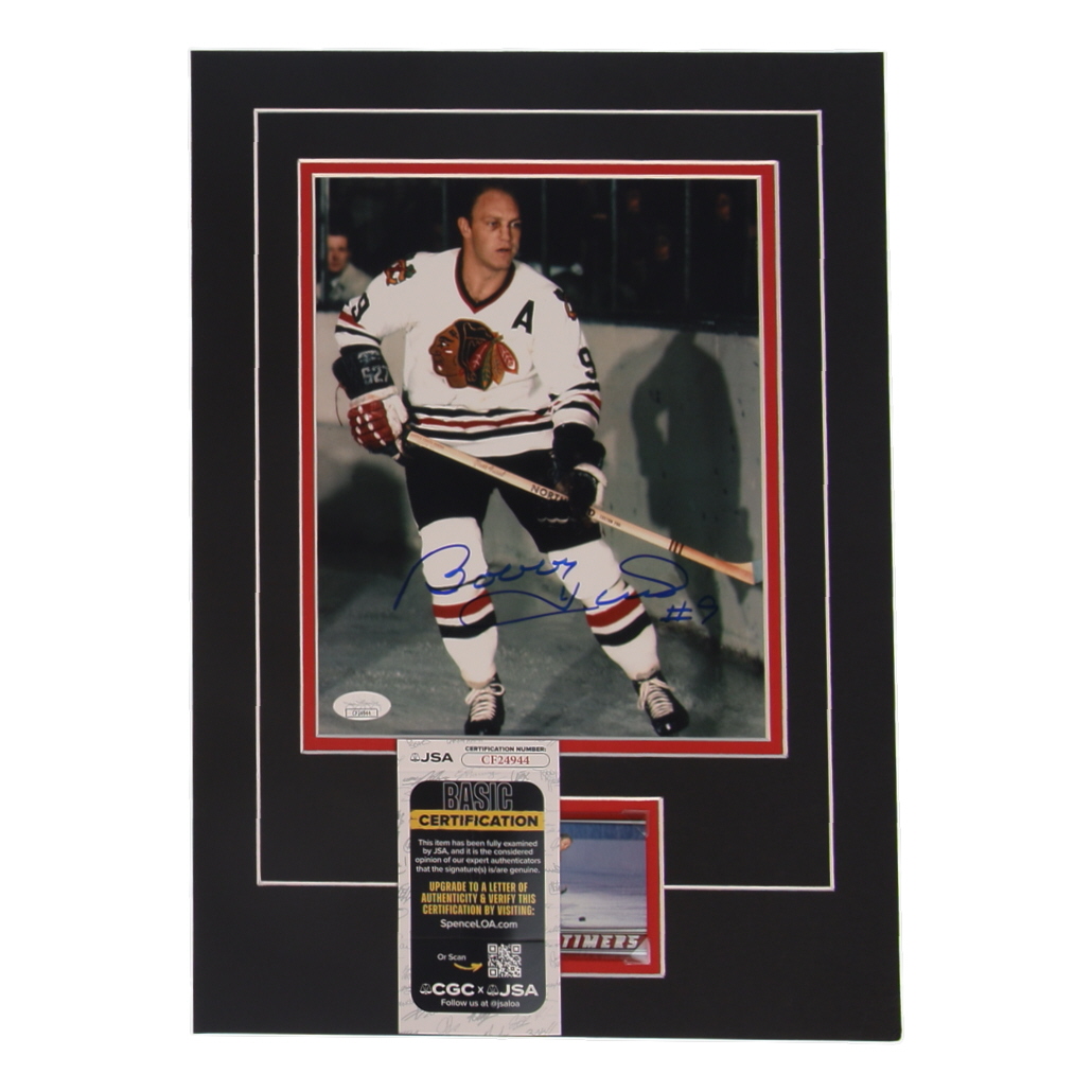 Bobby Hull Signed Blackhawks 12x17 Custom Matted Photo Display with Trading Card (JSA)