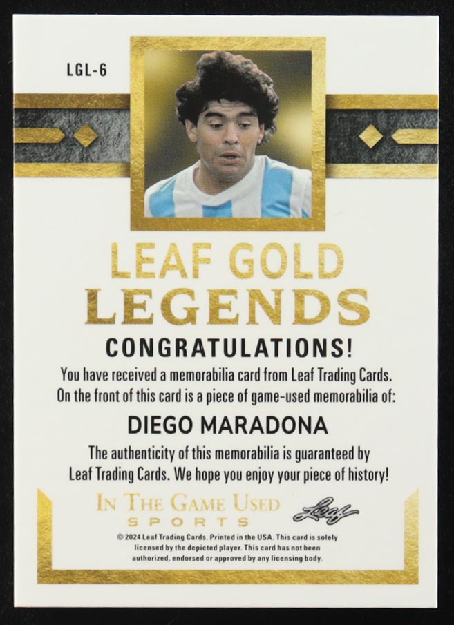 Diego Maradona 2024 Leaf ITG Used Sports Gold Legends Memorabilia Bronze #LGL6 #3/5