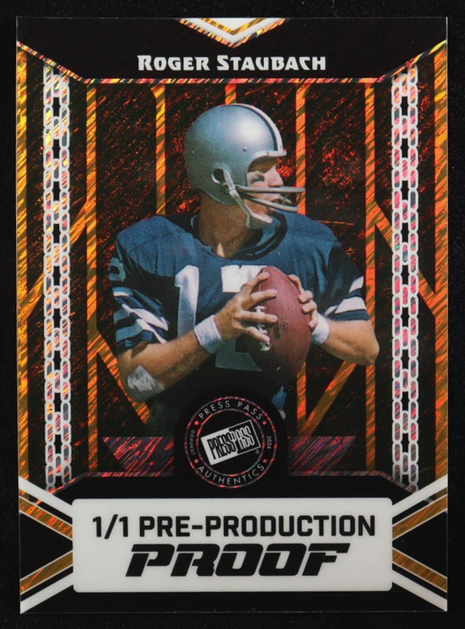 Roger Staubach Press Pass Pre-Production Proof Gold Shimmer #NNO #1/1