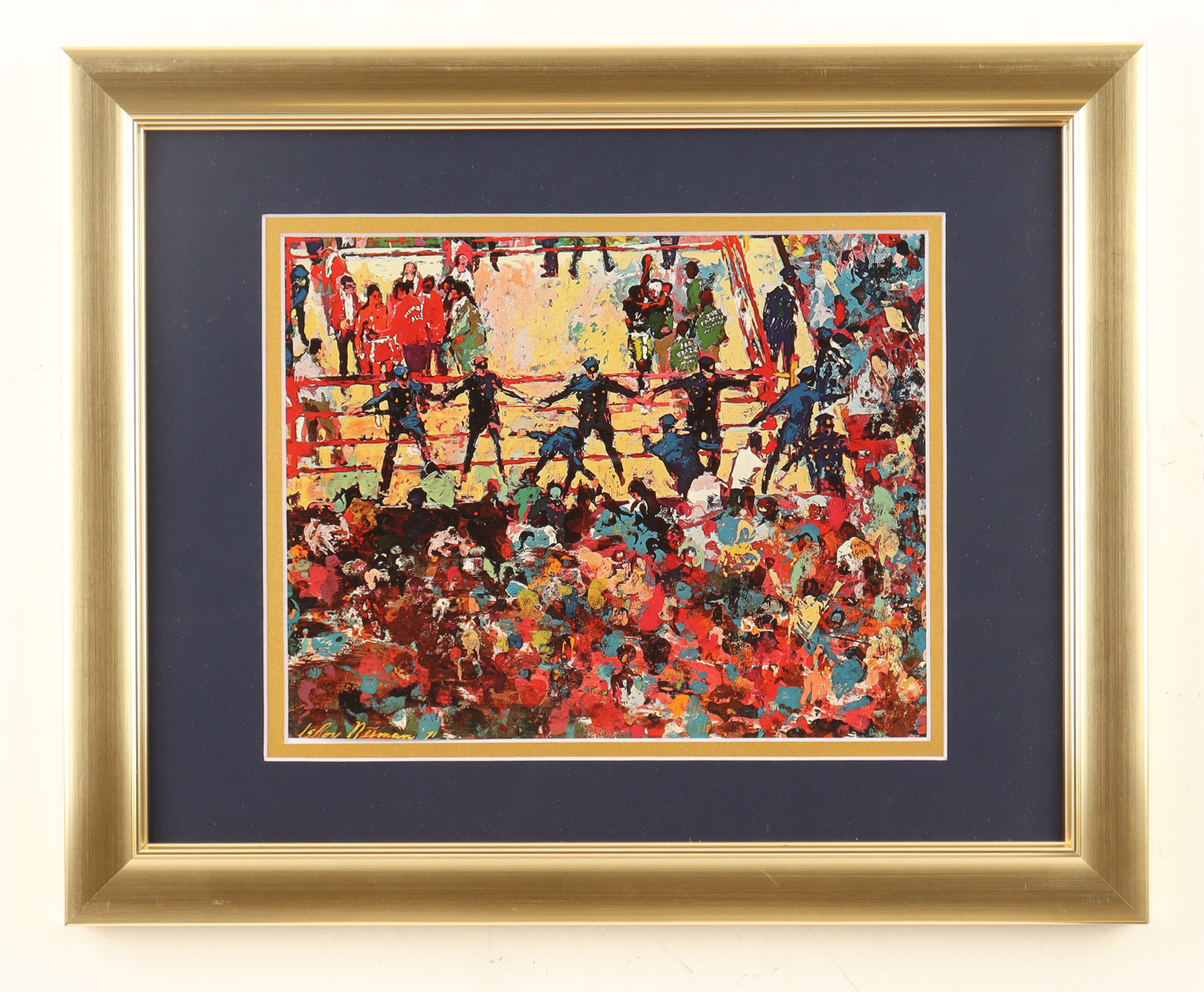 Custom frame measures approximately 13" x 16" in size and features a print from LeRoy Neiman (D. 2012). Please note, the display is unsigned.
