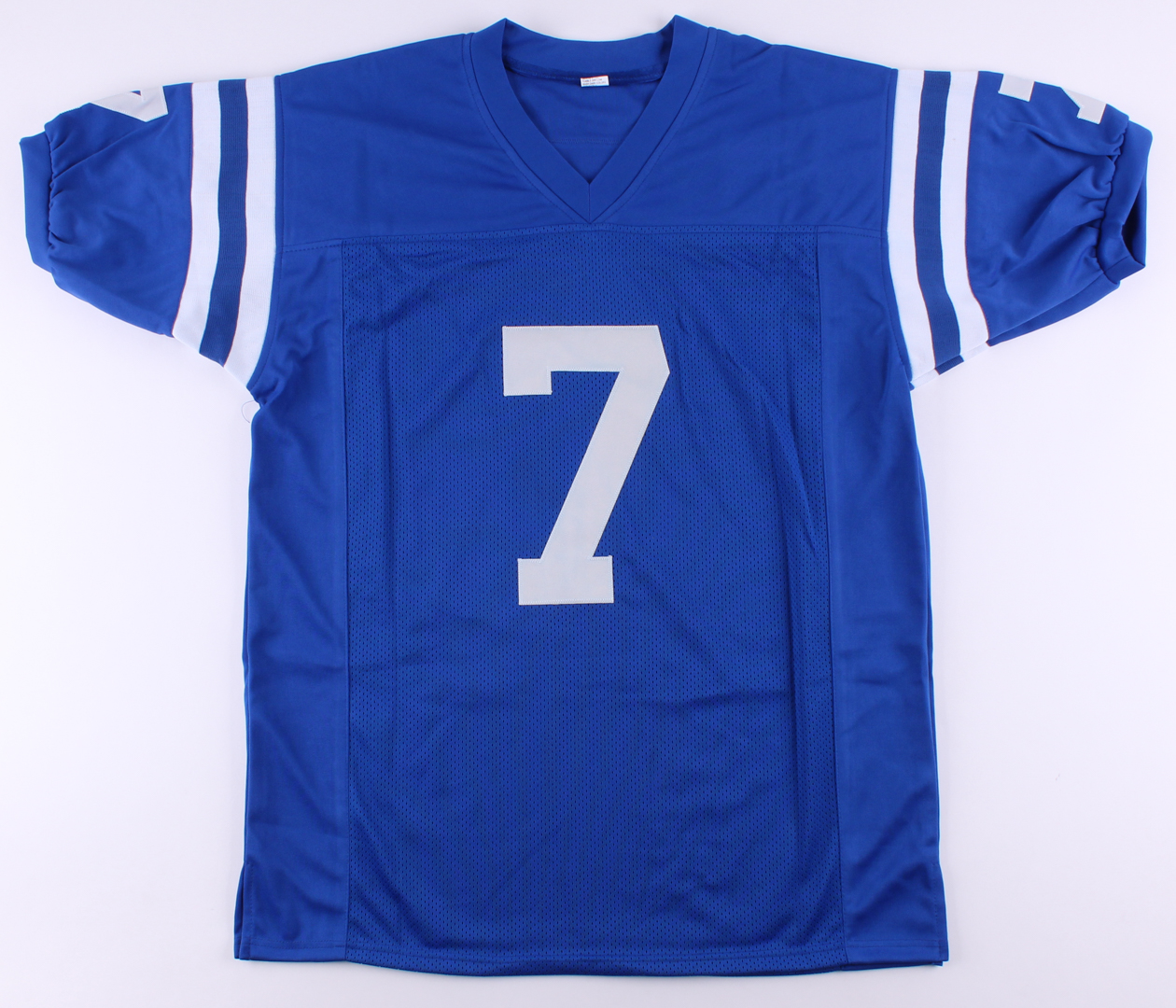 Custom on-field style jersey. Everything sewn on, size XL. Hand-signed in black felt-tip pen by Bert Jones (Rams).