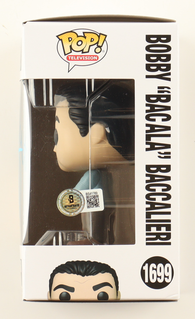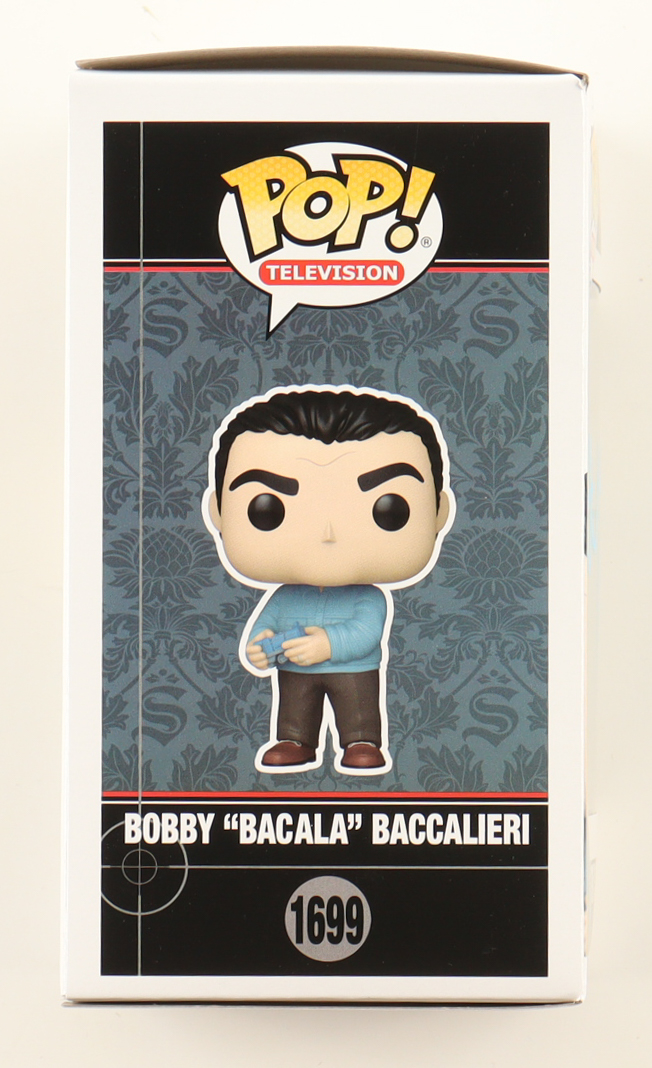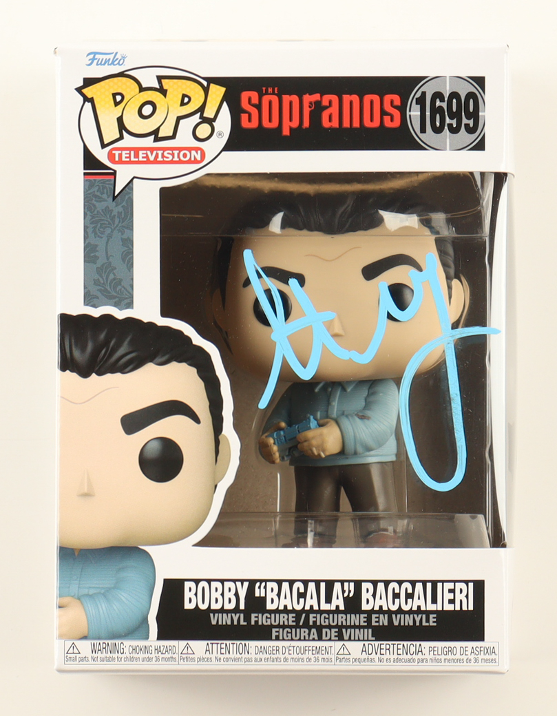 Funko pop! vinyl figure measures approximately 4" tall. Hand-signed on the packaging by Steve Schirripa (Bobby Bacala). Please note there is a tear on top of the packaging.