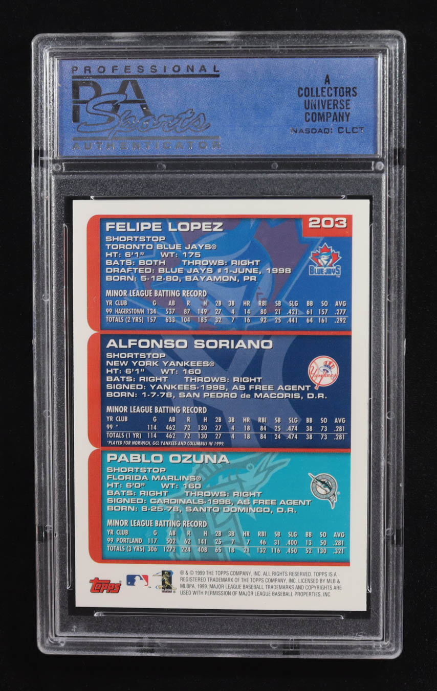 Alfonso Soriano / Felipe Lopez / Pablo Ozuna 2000 Topps #203 (PSA 8)