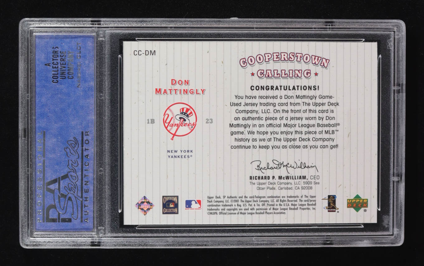 Don Mattingly 2001 SP Authentic Cooperstown Calling Game Jersey #CCDM (PSA 8)