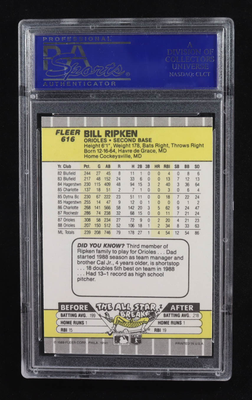 Bill Ripken 1989 Fleer #616E DP / Black Box Covering Bat Knob (PSA 9)
