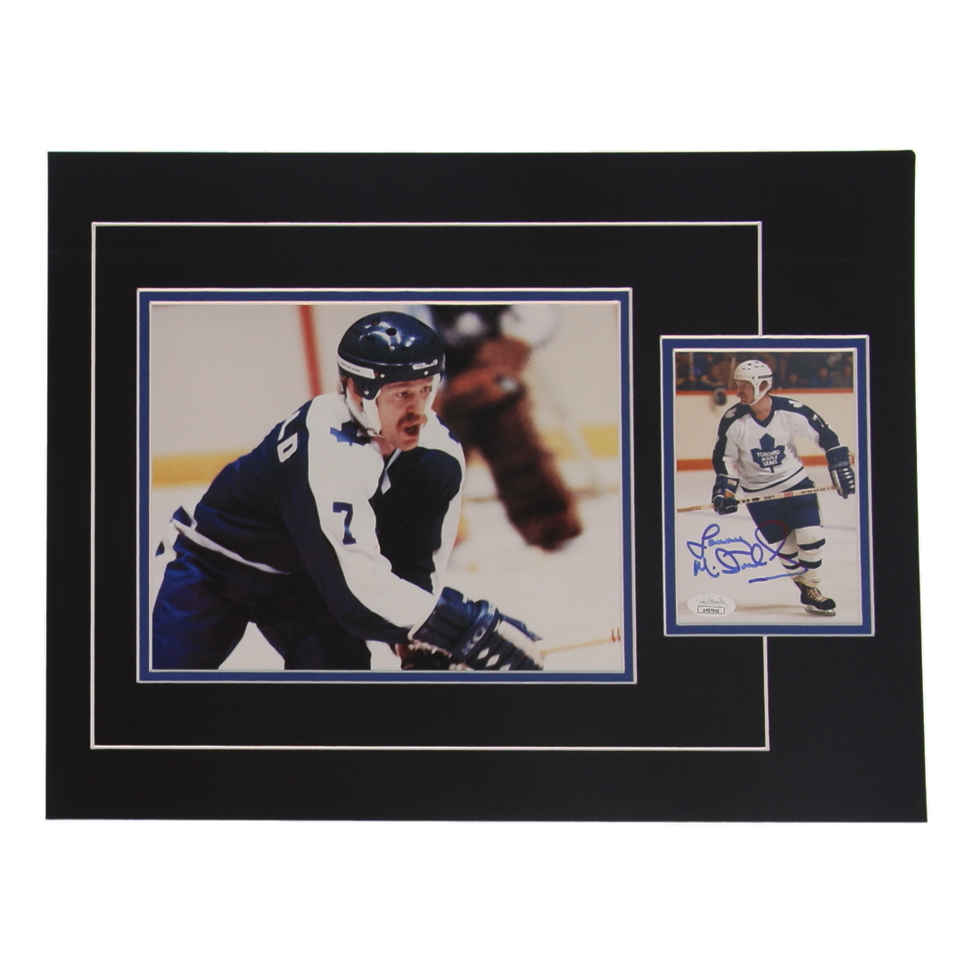 Custom display measures approximately 12" x 17" in size and features a photo that has been hand-signed and inscribed by Lanny McDonald (Toronto Maple Leafs, HOF). The display also features an 8" x 10" photo.