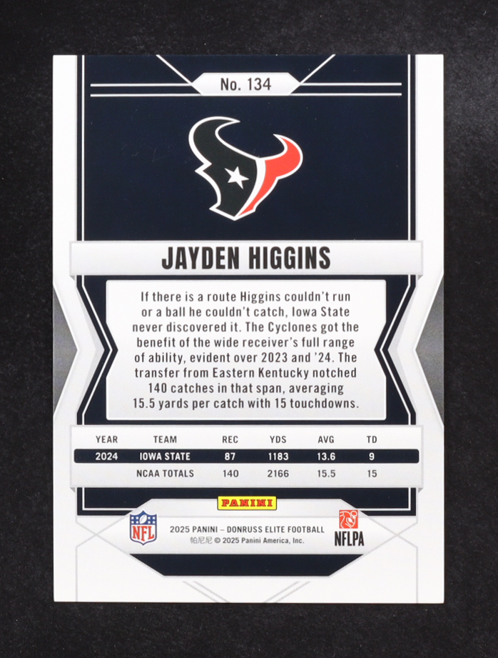 Jayden Higgins 2025 Elite Status Metallic Orange #134 #334/849 RC
