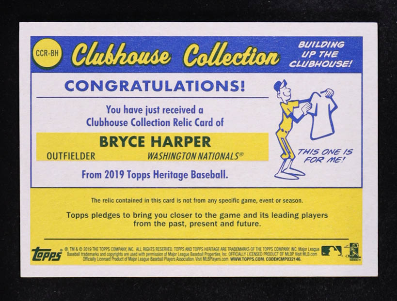 Bryce Harper 2019 Topps Heritage Clubhouse Collection Relics #CCRBH