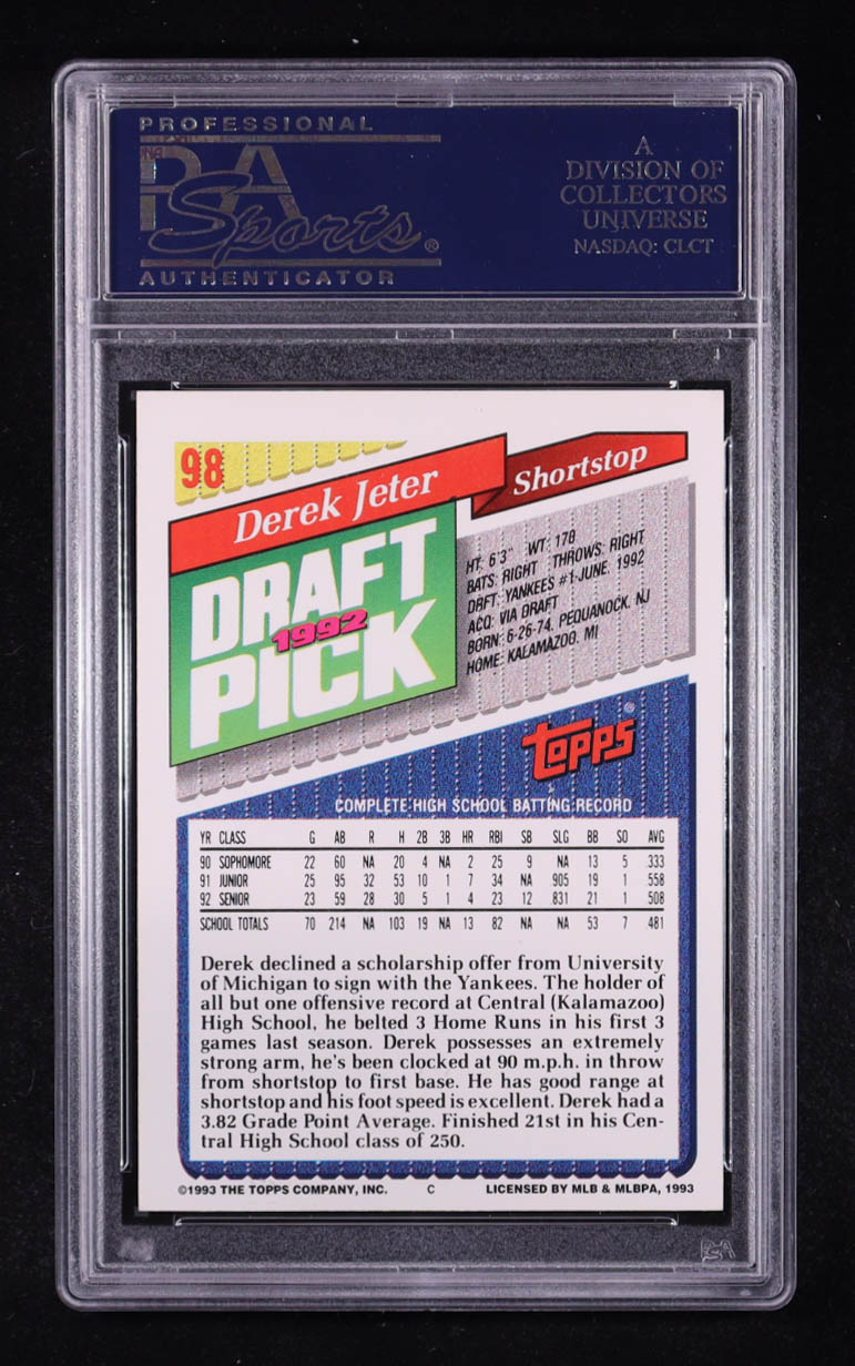 Derek Jeter 1993 Topps 92' Draft Pick #98 RC (PSA 8)