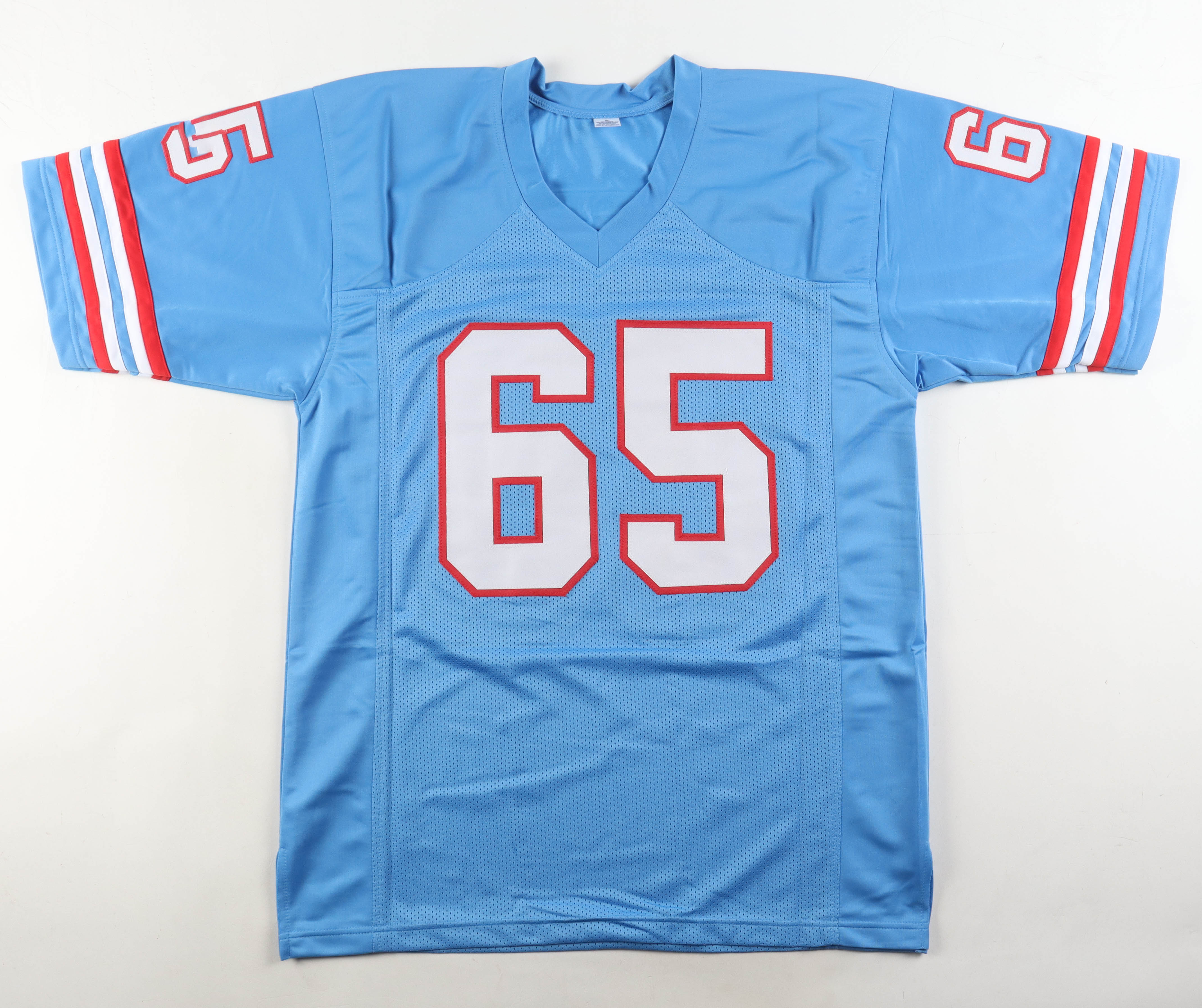 Custom jersey. Everything sewn on, size XL. Hand-signed and inscribed by Elvin Bethea (HOF). Please note, the signature has bled.