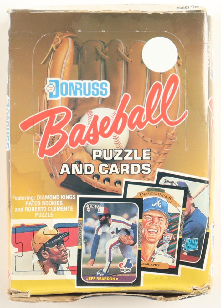 1987 Donruss Baseball Puzzle and Cards wax hobby box. Contains 36 packs. Each pack contains (15) cards and (3) puzzle pieces.
