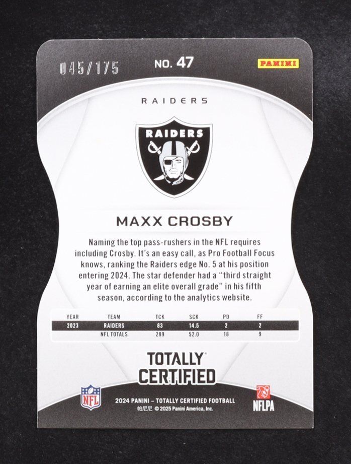Maxx Crosby 2024 Totally Certified Mirror Platinum Red Die Cut #47 #045/175
