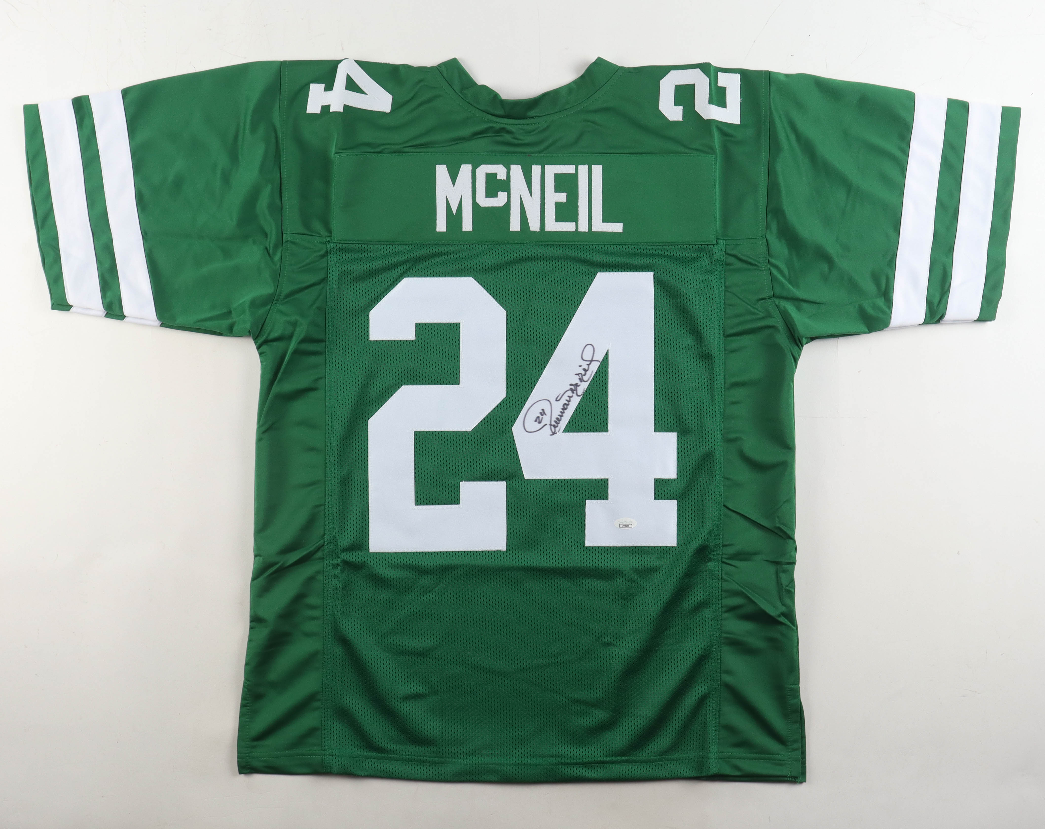 Custom jersey with everything sewn on, size XL. Hand-signed by Freeman McNeil.