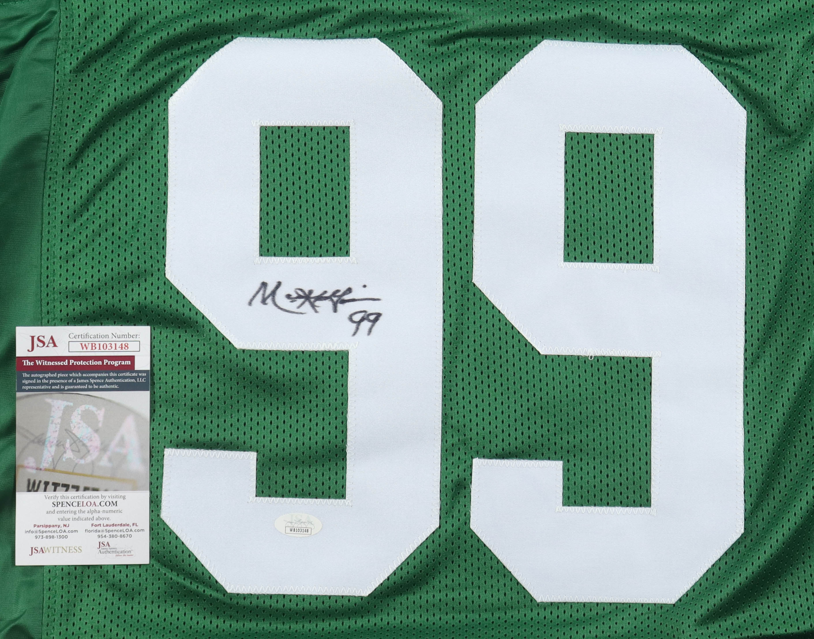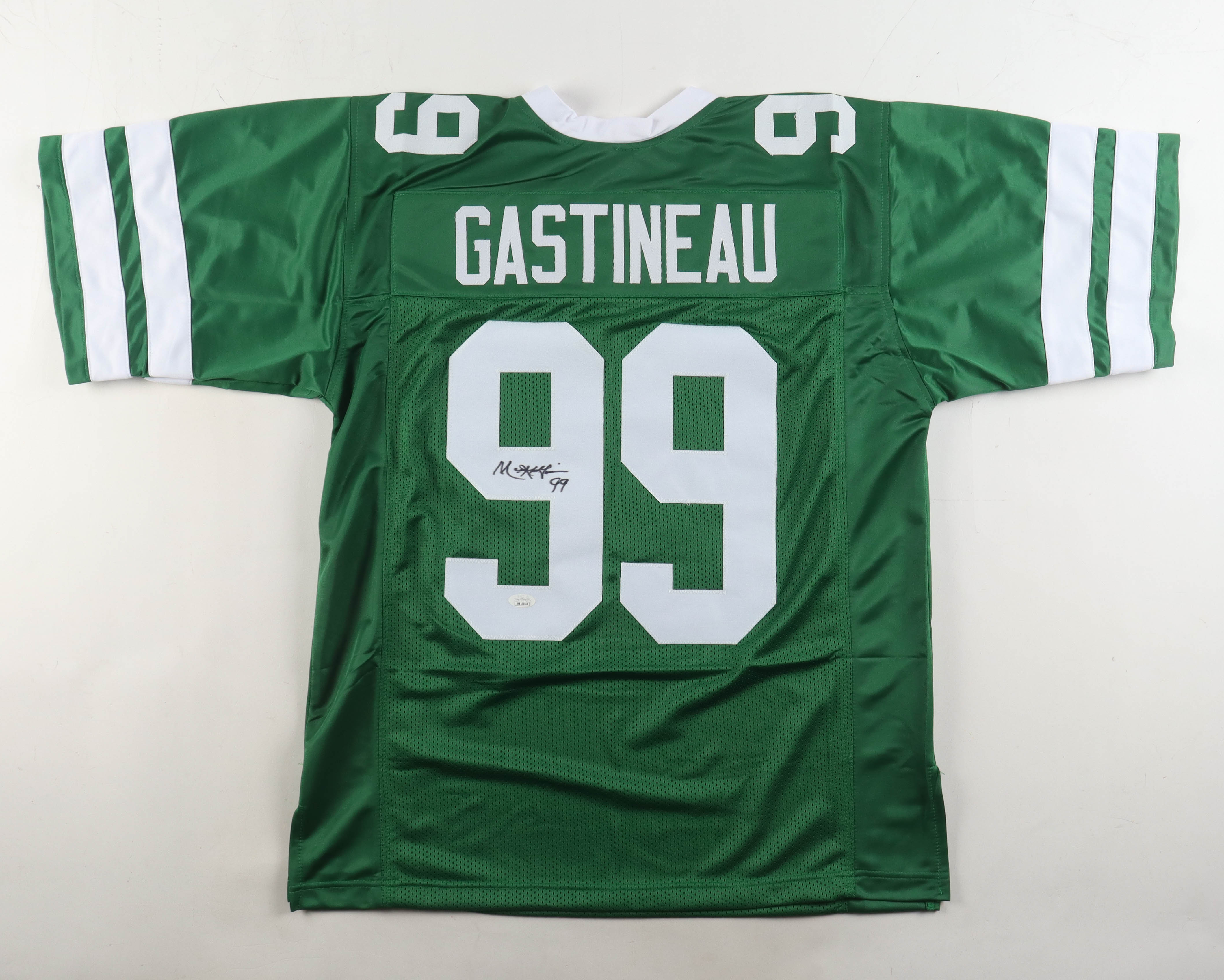Custom jersey with everything sewn on, size XL. Hand-signed by Mark Gastineau.