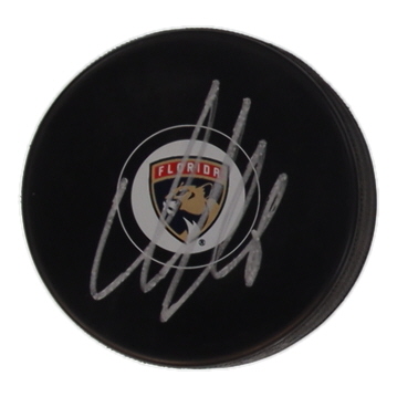 Florida Panthers Logo Hockey Puck. Hand-signed by Aleksander Barkov.