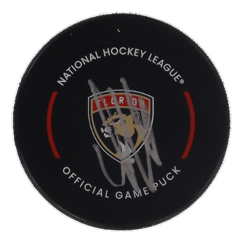 Aleksander Barkov Signed Panthers Logo Hockey Puck (Beckett)