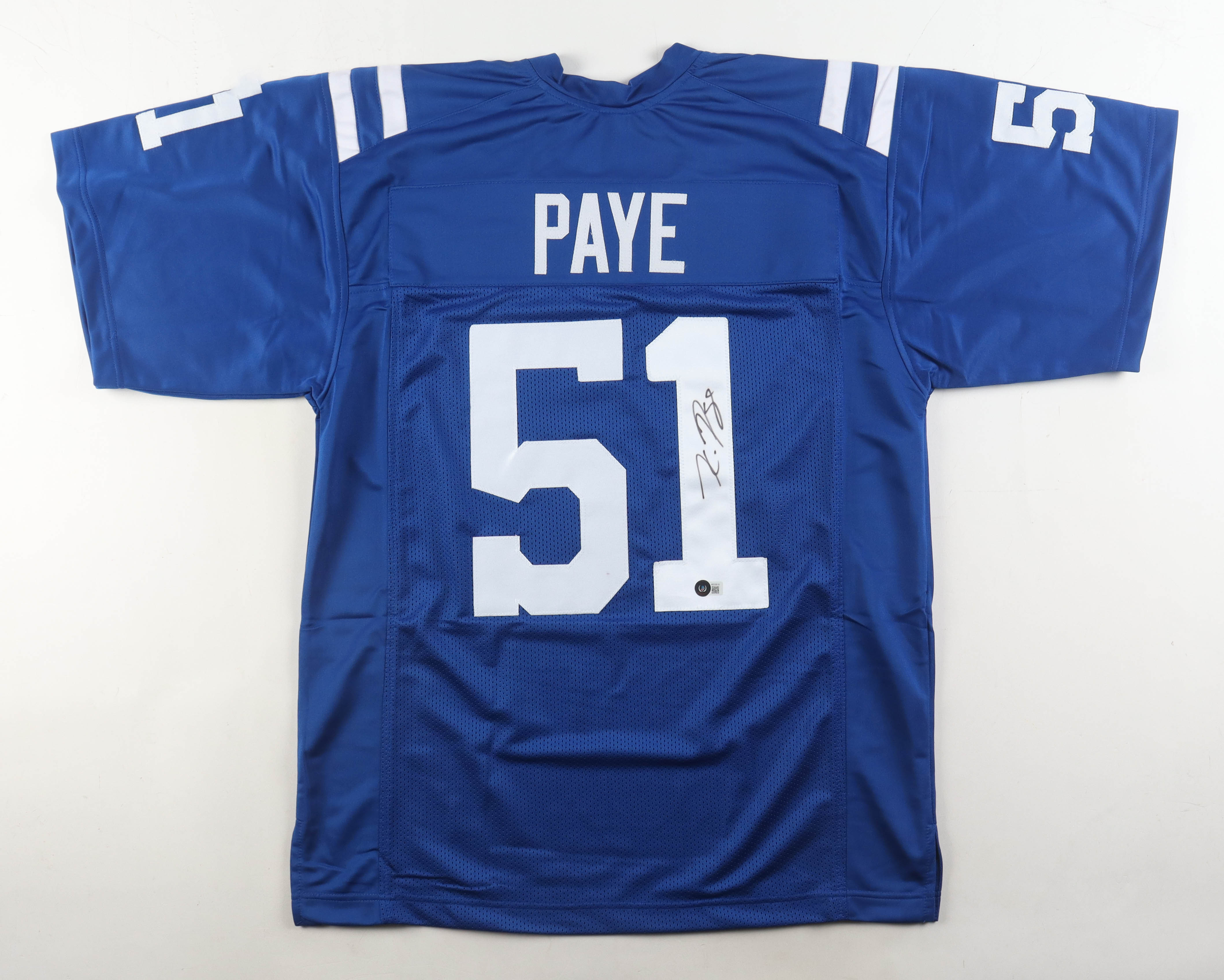 Custom jersey with everything sewn on, size XL. Hand-signed by Kwity Paye. Please note, there is a stain on the reverse number. See photos regarding the condition of the item.