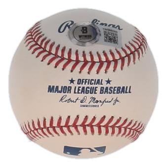 Rawlings Official Major League Baseball. Hand-signed and inscribed by Frank Thomas (Chicago White Sox, HOF). Please note, there are stains throughout the baseball.