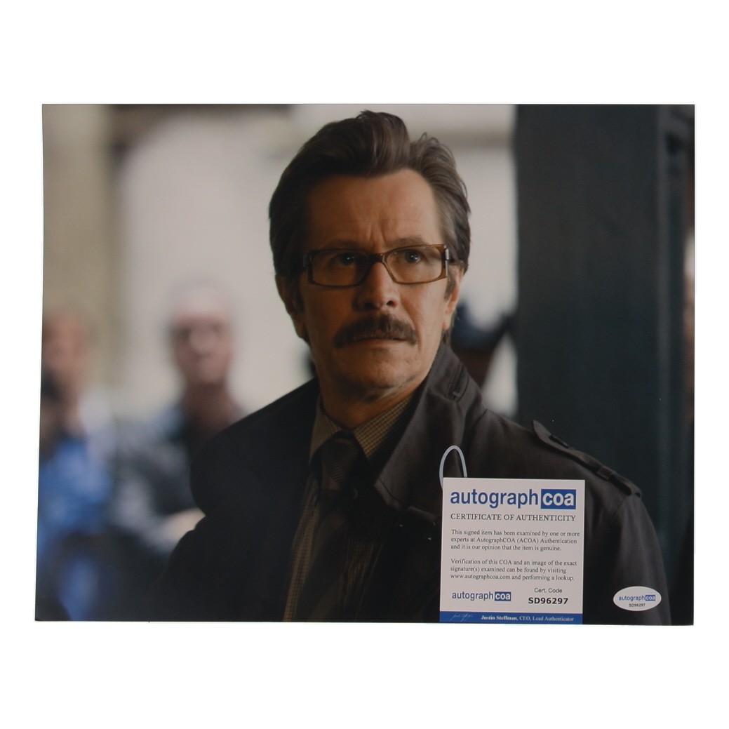 Photo measures 11" x 14" in size and has been hand-signed by Gary Oldman (James Gordon).