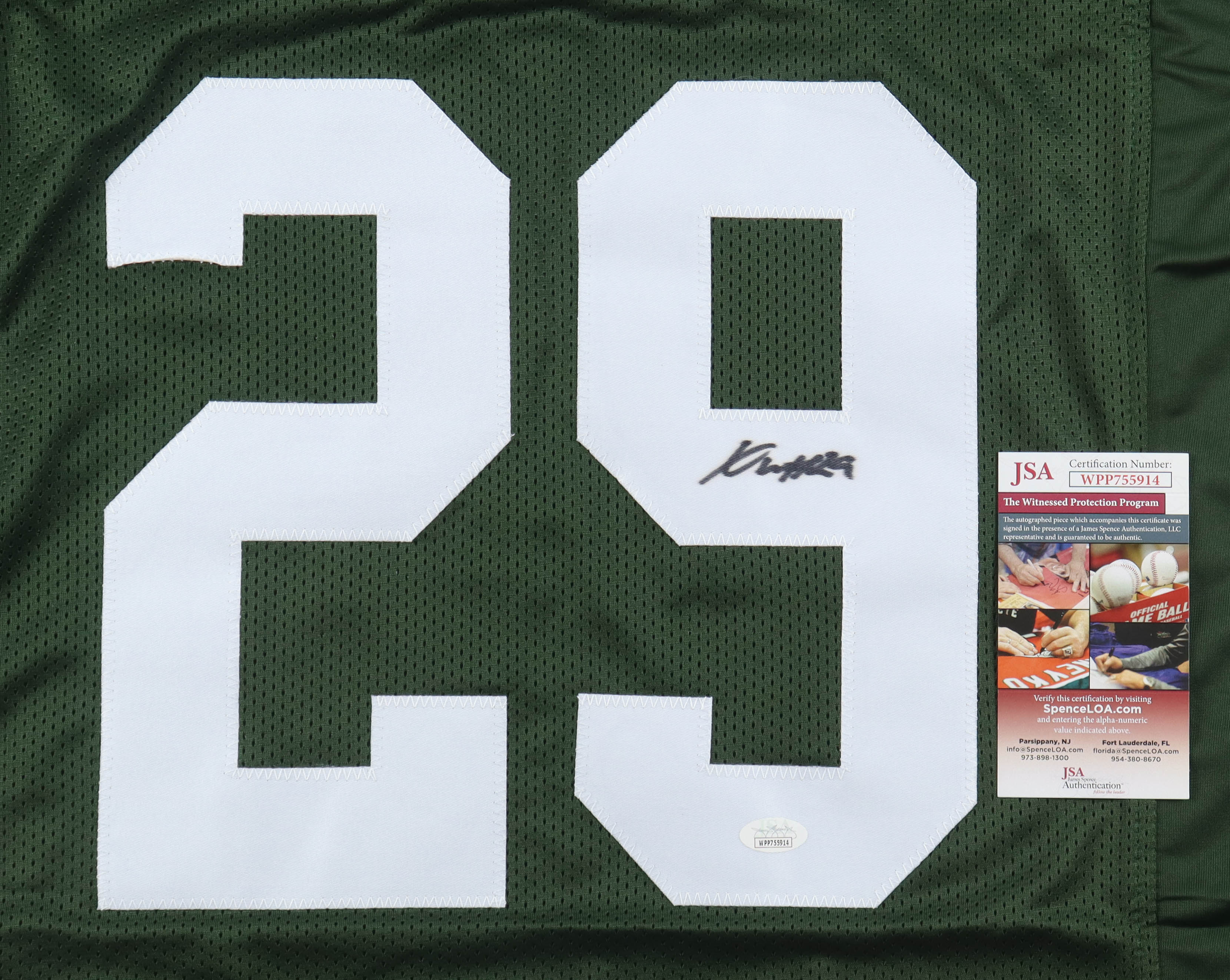 Custom jersey. Everything sewn on, size XL. Has been hand-signed by Xavier McKinney.