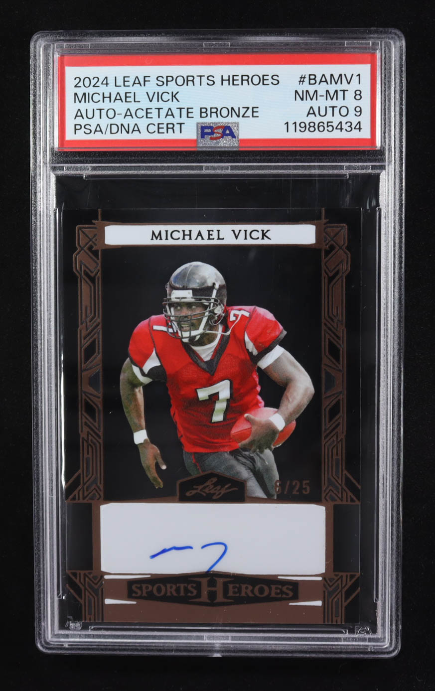 Michael Vick 2024 Leaf Metal Sports Heroes Autographs Acetate Bronze #BAMV1 #06/25 (PSA 8 | Autograph Graded 9)