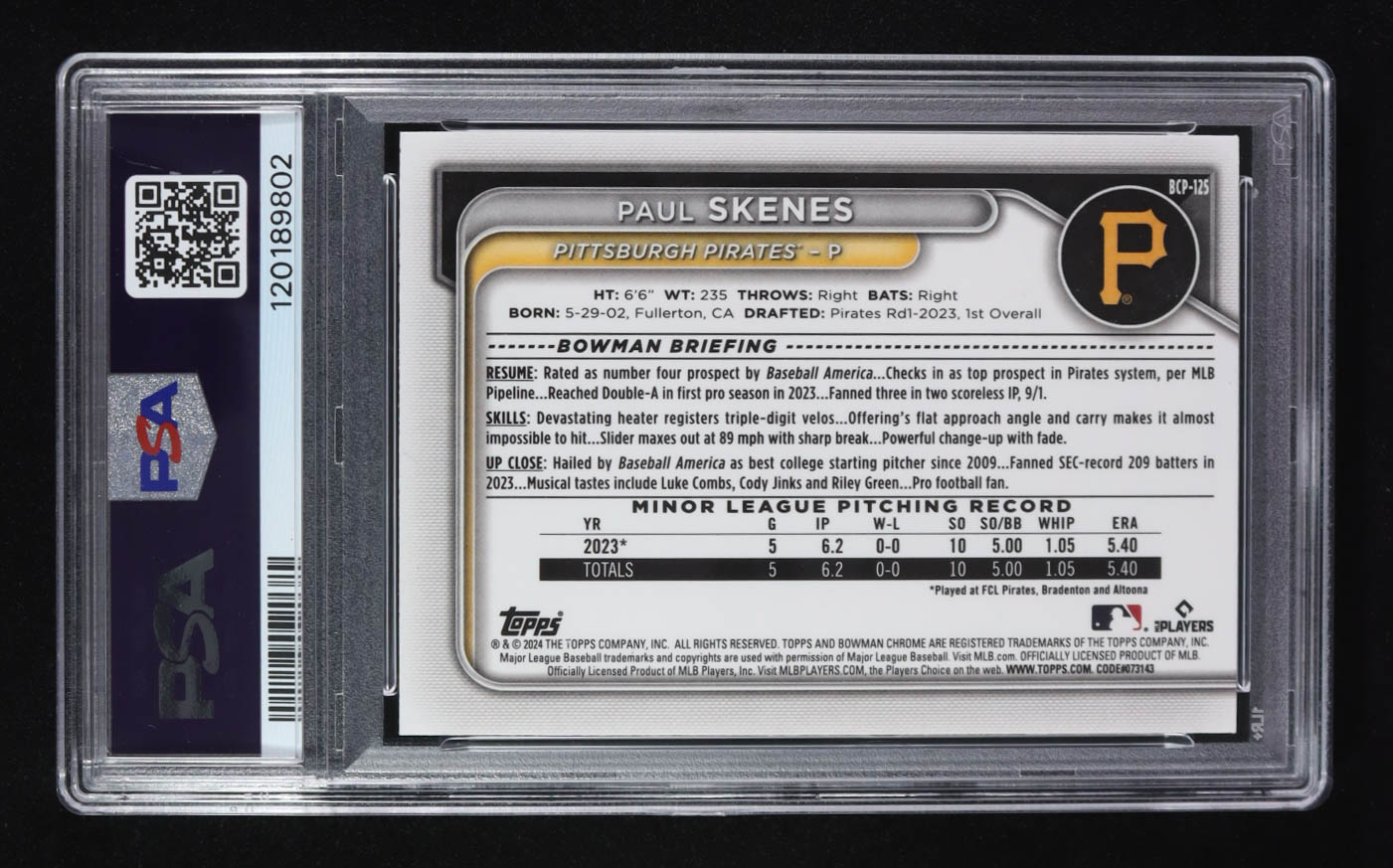 Paul Skenes 2024 Bowman Chrome Prospects #BCP125 RC (PSA 9)