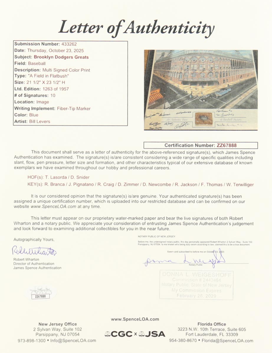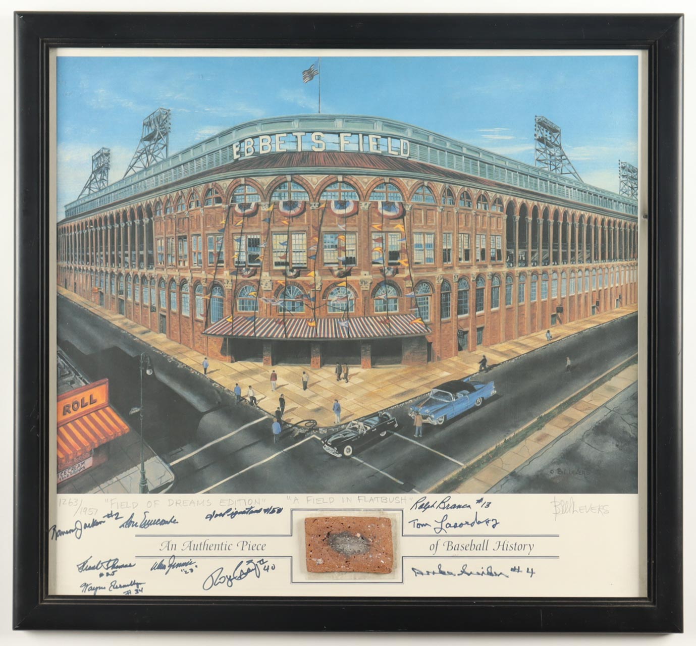 Brooklyn Dodgers Greats | "A Field in Flatbush" by Bill Levers Custom Framed Art Print Display (JSA)