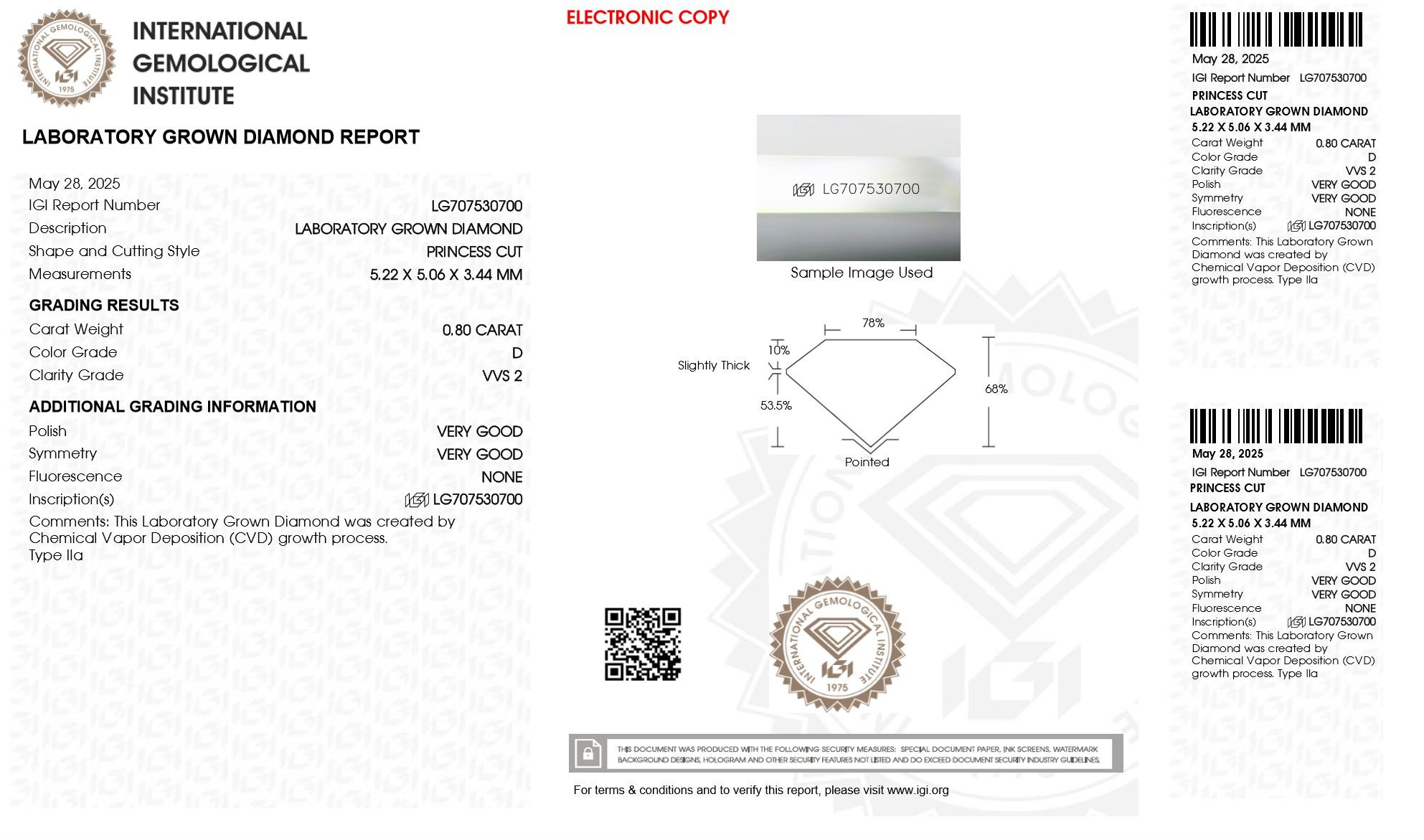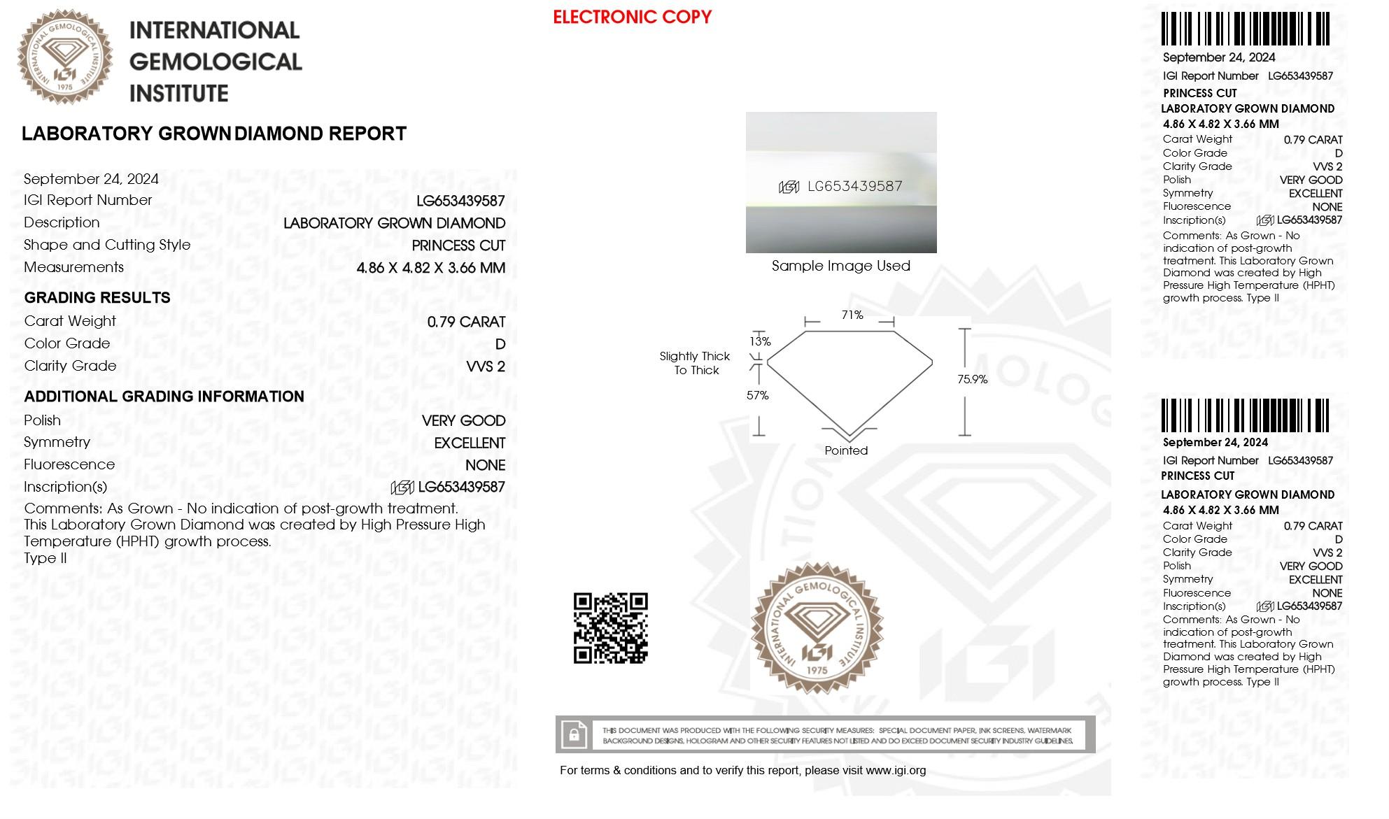 The diamonds feature precision laser inscriptions with the IGI certificate numbers, ensuring authenticity and traceability.