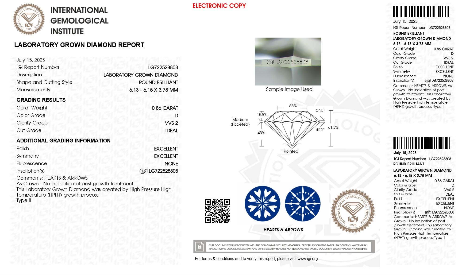 The diamonds feature precision laser inscriptions with the IGI certificate numbers, ensuring authenticity and traceability.