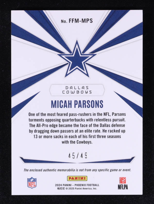 Micah Parsons 2024 Panini Phoenix Franchise Future Materials Blue #14 #45/49