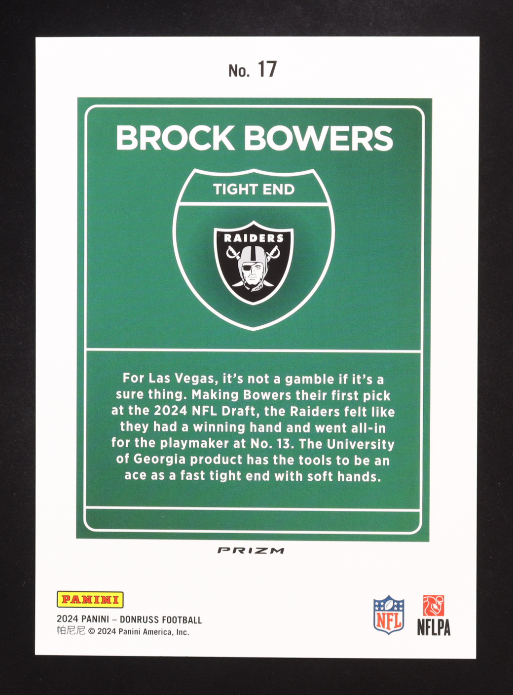 Please see photos for details regarding the condition of the card (Las Vegas Raiders).