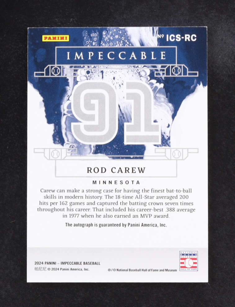 Rod Carew 2024 Panini Impeccable Impeccable Cooperstown Signatures #18 #50/91