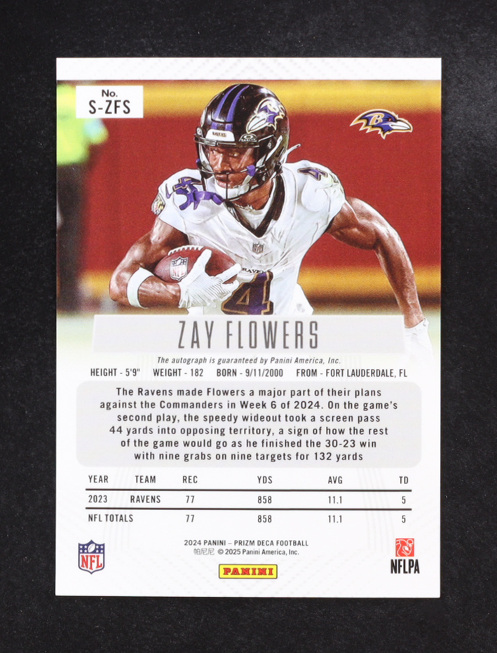 Zay Flowers 2024 Panini Prizm Deca Signatures #15