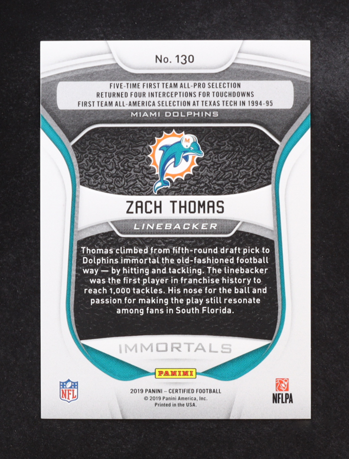 Zach Thomas 2019 Certified Mirror Green #130 Immortals #3/5
