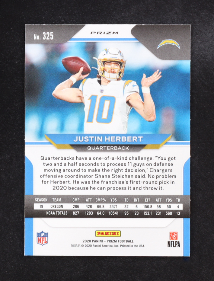 Justin Herbert 2020 Panini Prizm Prizms Red Ice #325 RC