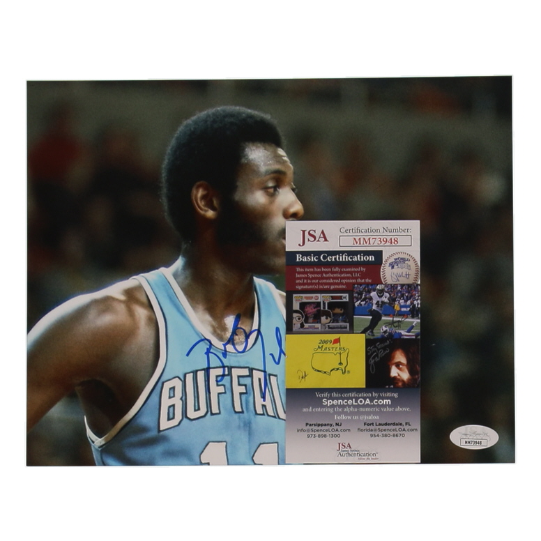 Photo measures 8" x 10" in size. Hand-signed by Bob McAdoo (Buffalo Braves, HOF).