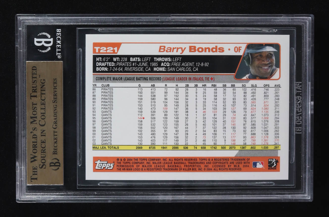 Barry Bonds 2004 Topps Traded #T221 HTA (BGS 9.5)