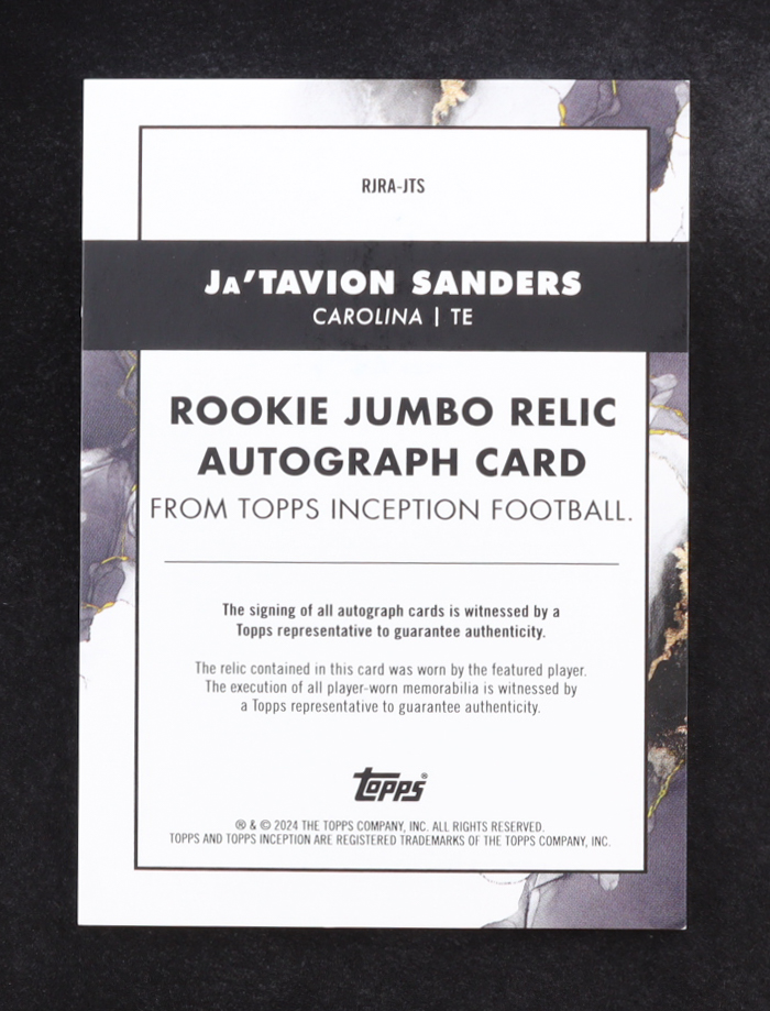 Ja'Tavion Sanders 2024 Topps Inception Rookie Jumbo Relic Autographs Orange #RJRAJTS #19/20 RC